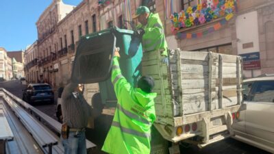 Zacatecas, Zac., 3 de noviembre de 2025.- El Gobierno del Estado, encabezado por el mandatario David Monreal Ávila, a través de Secretaría de Obras Pública (SOP), continúa con los trabajos de recolección de residuos sólidos, en las principales calles, plazuelas y callejones de la capital del estado, tras la realización del Festival del Día de Muertos Zacatecas 2025.