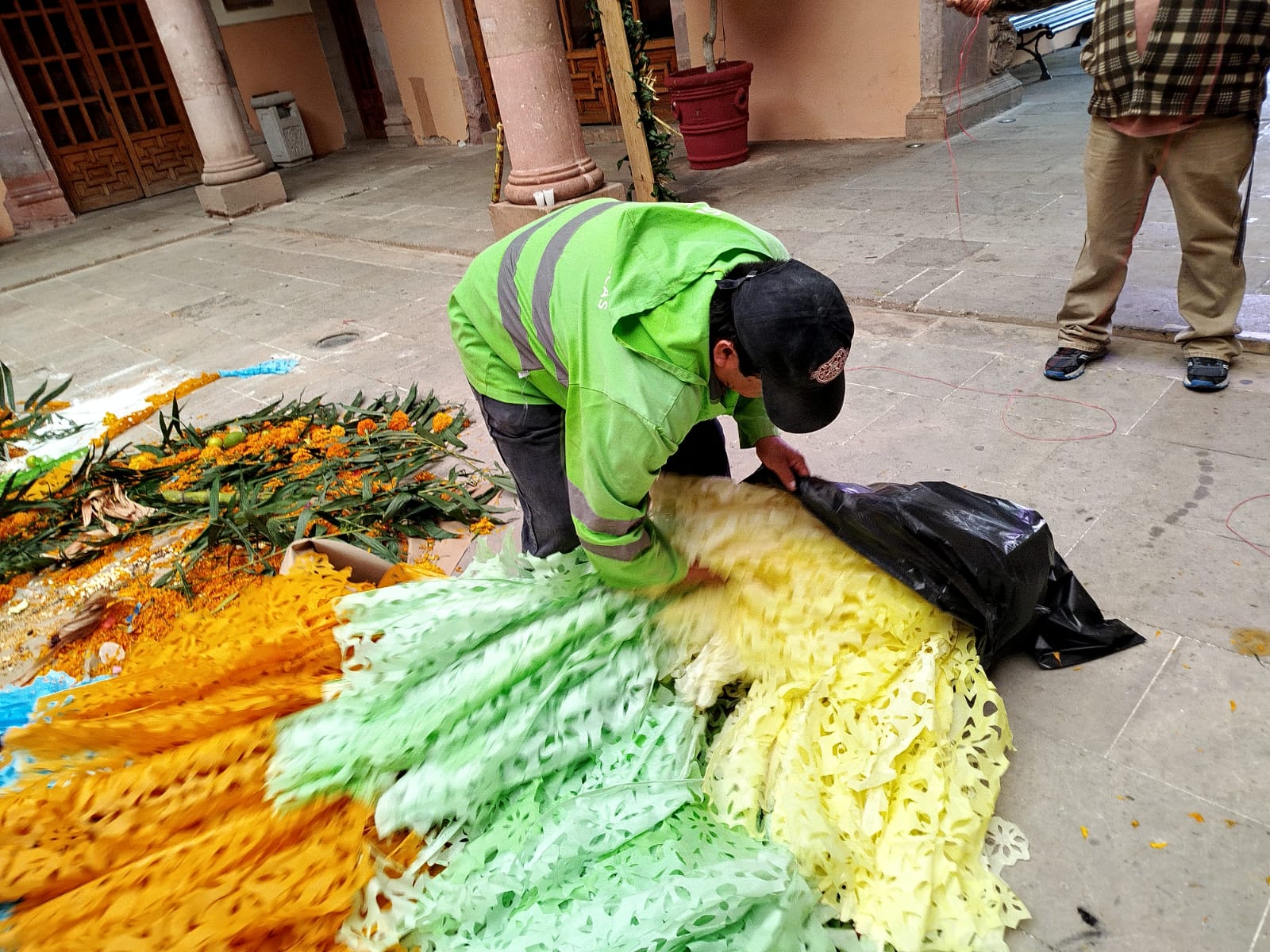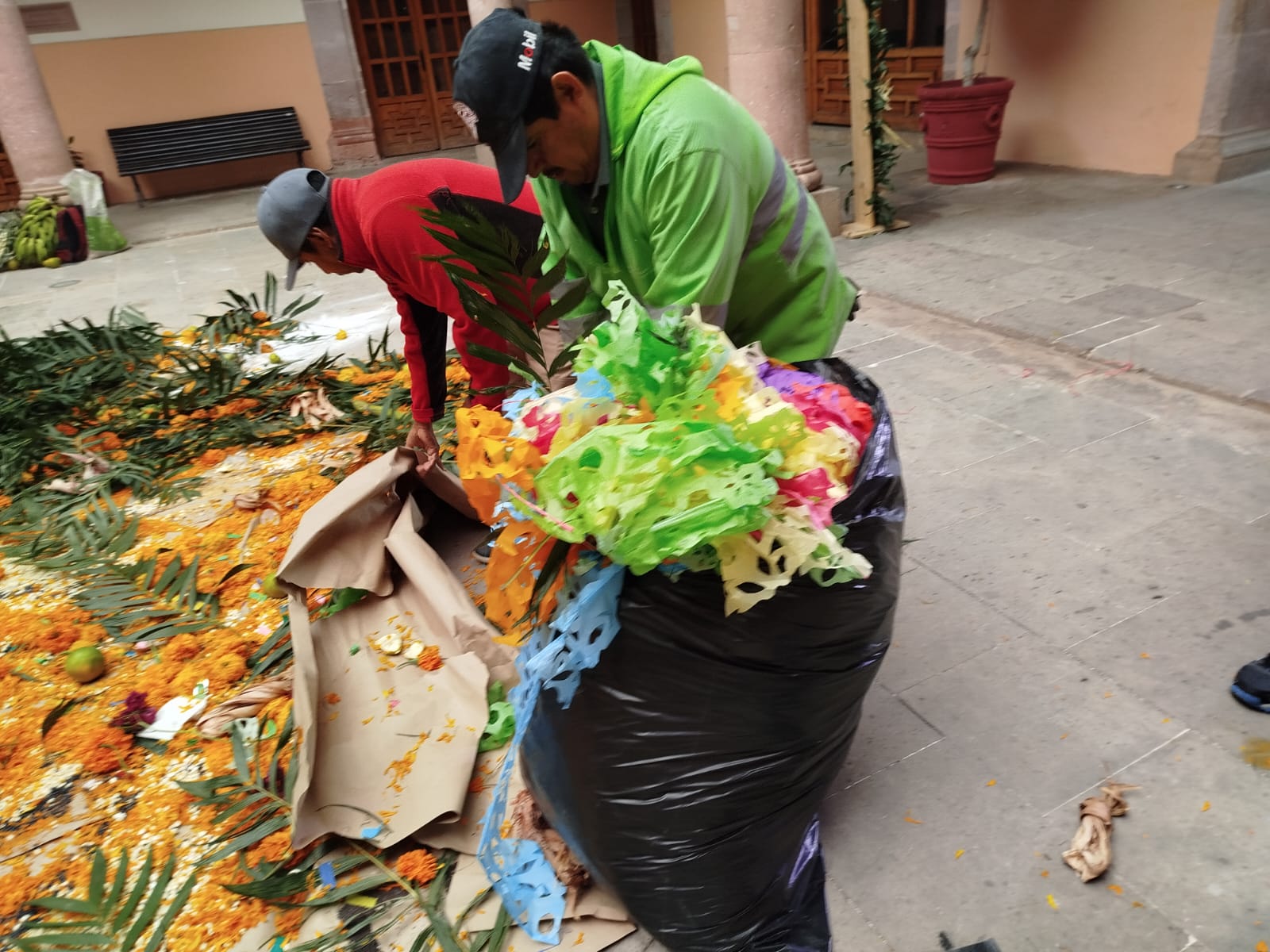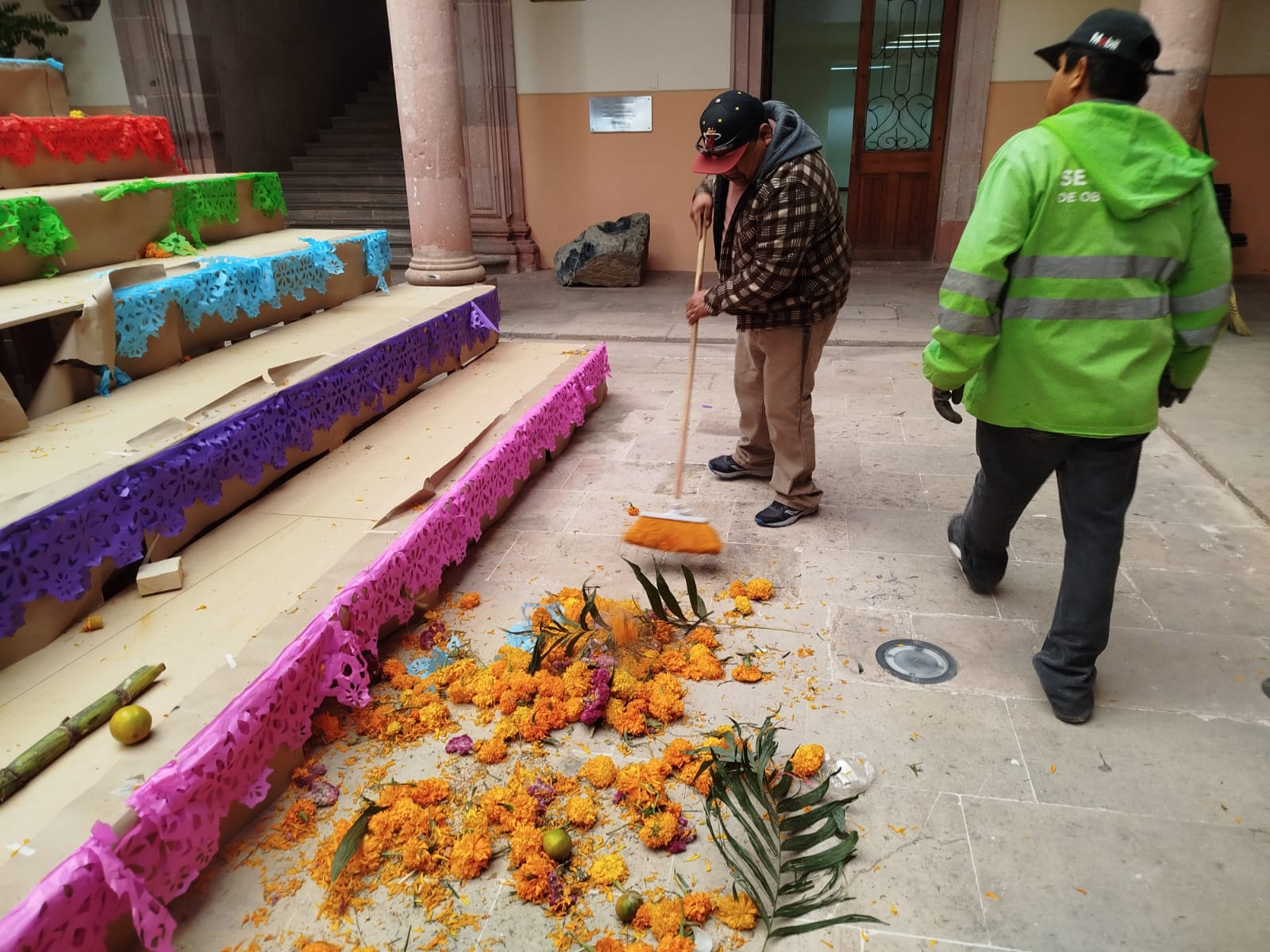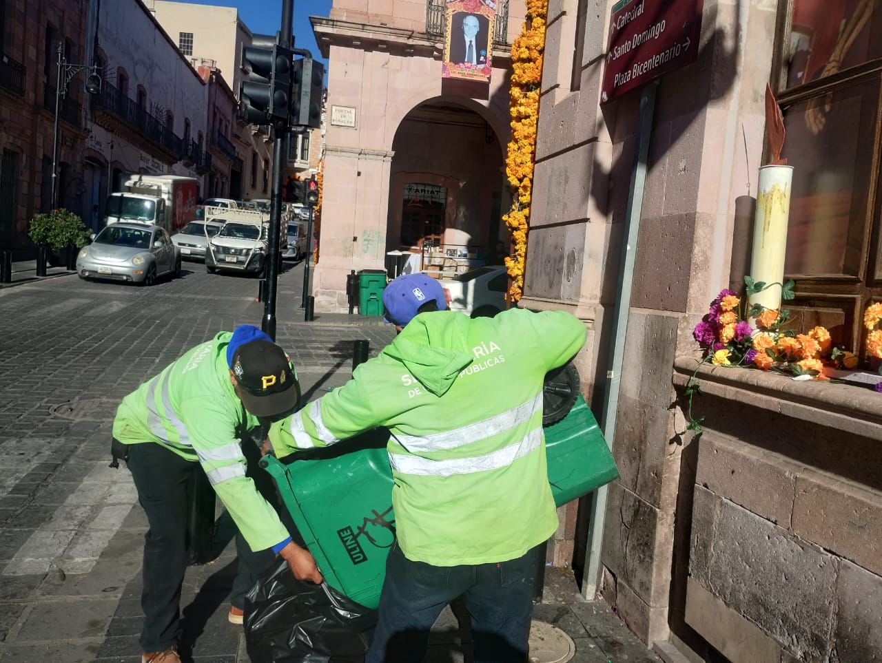 Zacatecas, Zac., 3 de noviembre de 2025.- El Gobierno del Estado, encabezado por el mandatario David Monreal Ávila, a través de Secretaría de Obras Pública (SOP), continúa con los trabajos de recolección de residuos sólidos, en las principales calles, plazuelas y callejones de la capital del estado, tras la realización del Festival del Día de Muertos Zacatecas 2025.