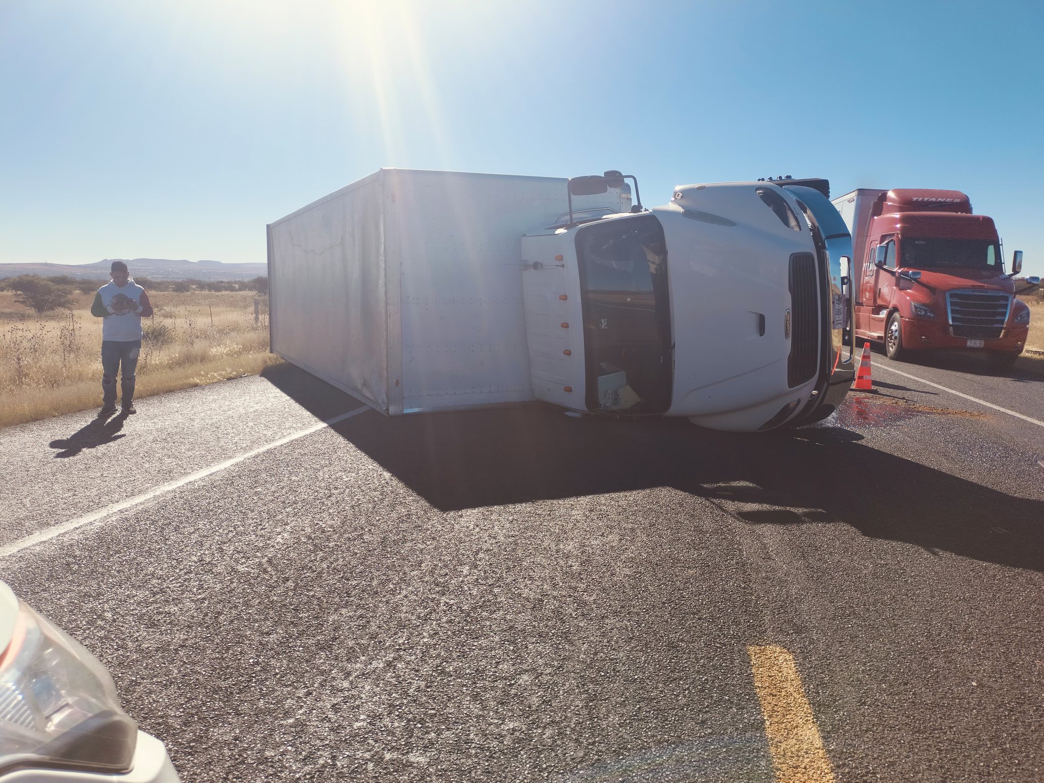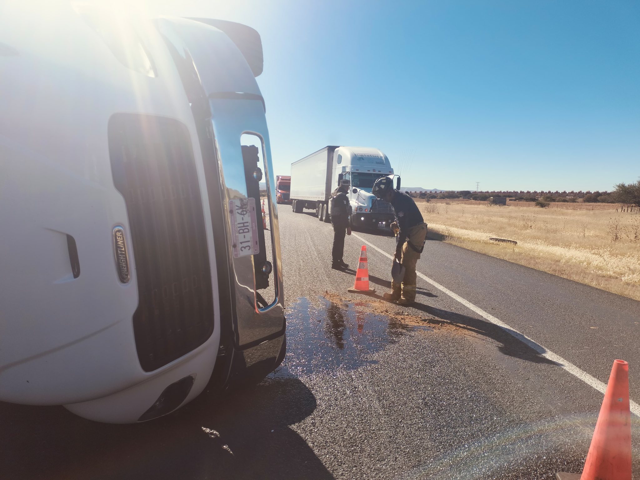 Atiende Protección Civil volcadura de tractocamión en la carretera 45D