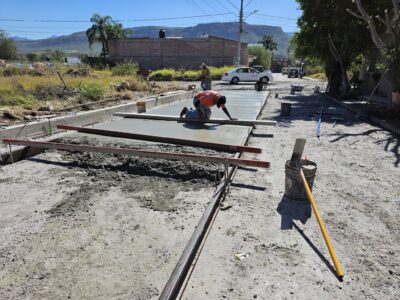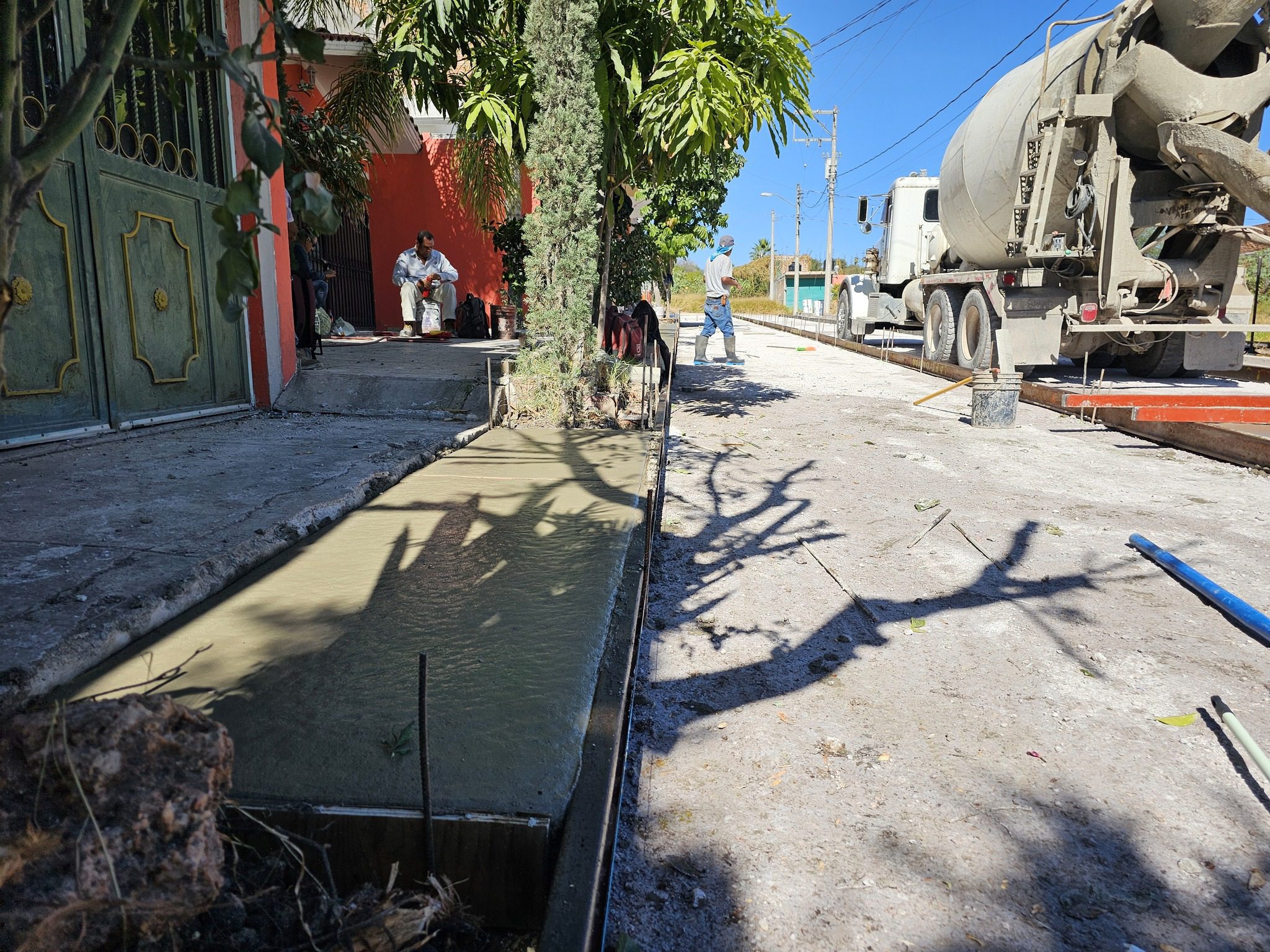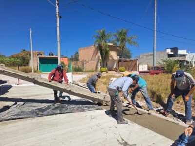Jalpa, Zacatecas. – El Gobierno Municipal de Jalpa informó avances en los trabajos de pavimentación con concreto hidráulico en la calle La Palma, obra anunciada por el alcalde Olegario Viramontes el pasado 31 de octubre y que se realiza mediante un esquema de colaboración entre vecinos y autoridad.