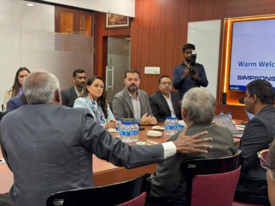 Aguascalientes, Ags. – Con el objetivo de fortalecer los lazos de cooperación y atraer nuevas inversiones al estado, autoridades locales sostuvieron una reunión con representantes de la empresa Simpson, de origen indio y reconocida a nivel mundial por su liderazgo en la fabricación de motores para los sectores automotriz y agrícola.