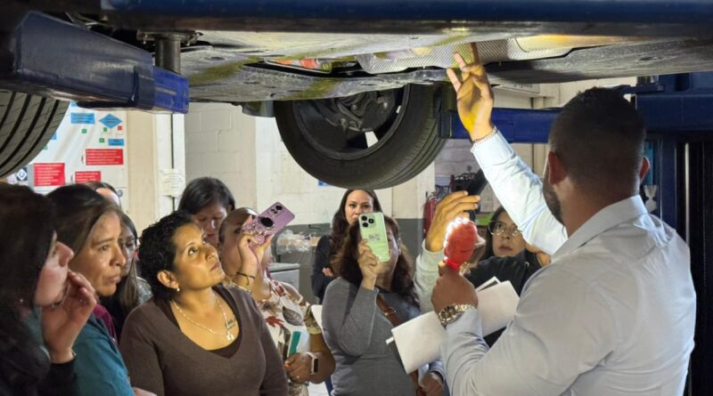 Durante las jornadas, las participantes aprendieron sobre revisión de niveles de aceite, presión de llantas, cambio de batería, señales del tablero y uso adecuado de herramientas, además de realizar prácticas sobre reemplazo de llanta y atención a emergencias viales.