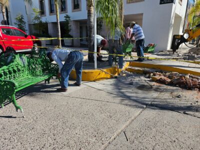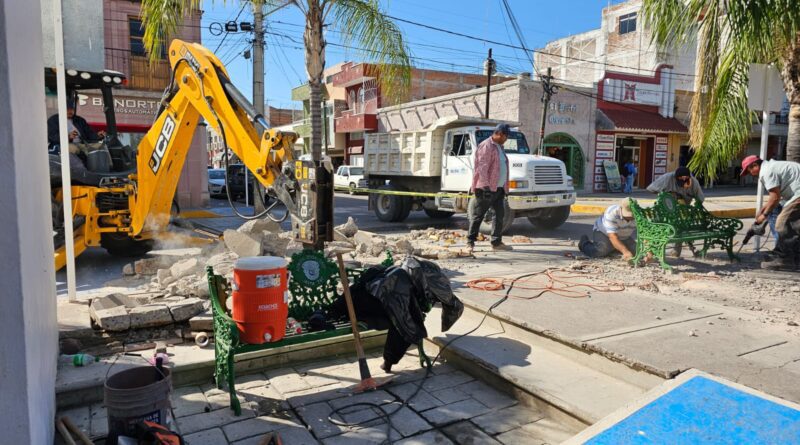 Inician trabajos para habilitar un espacio rosa frente a la Presidencia Municipal de Jalpa