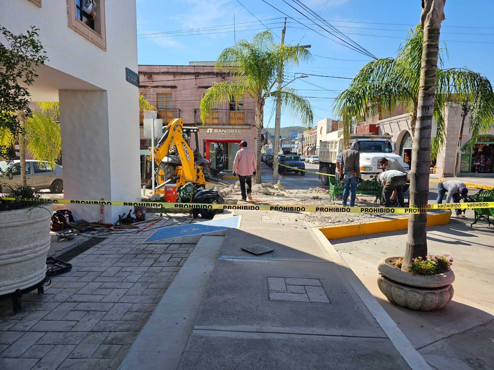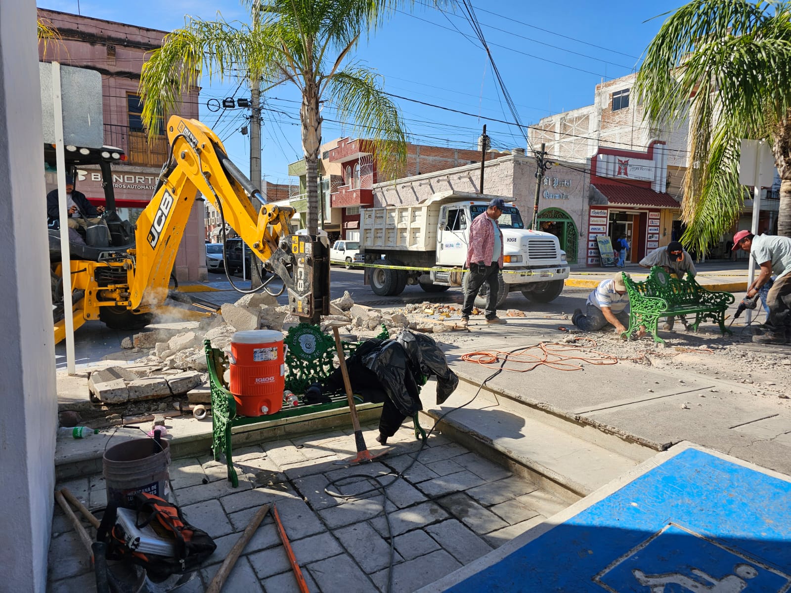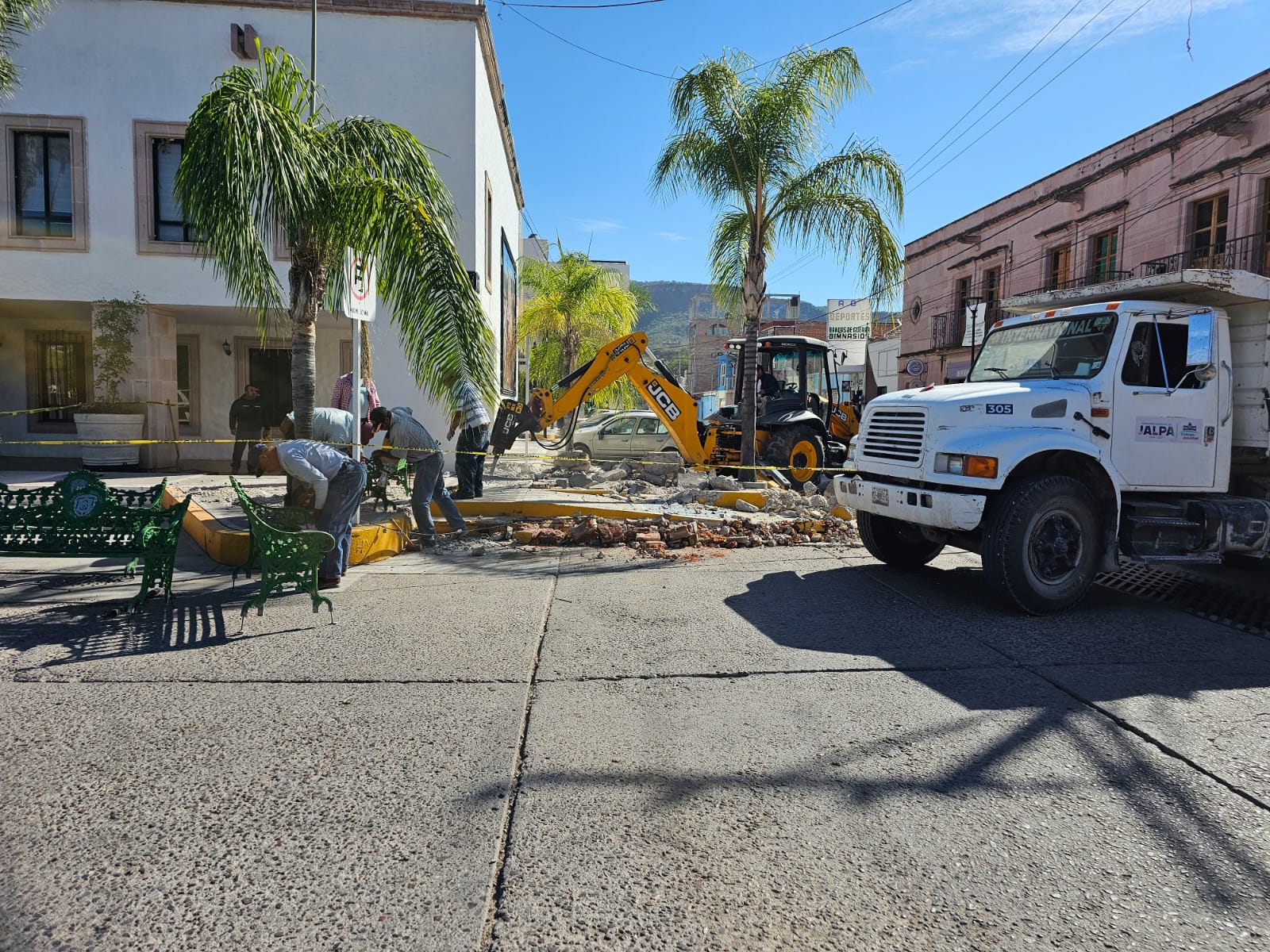 Inician trabajos para habilitar un espacio rosa frente a la Presidencia Municipal de Jalpa