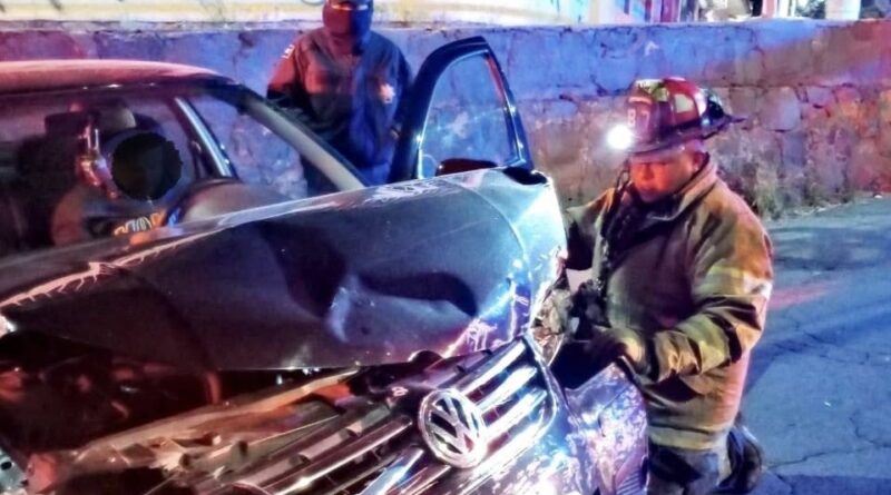 Paramédicos y rescatistas de la Coordinación Estatal de Protección Civil acudieron al sitio y localizaron un vehículo compacto de color oscuro con daños severos en la parte frontal, tras impactarse directamente contra un muro de contención.
