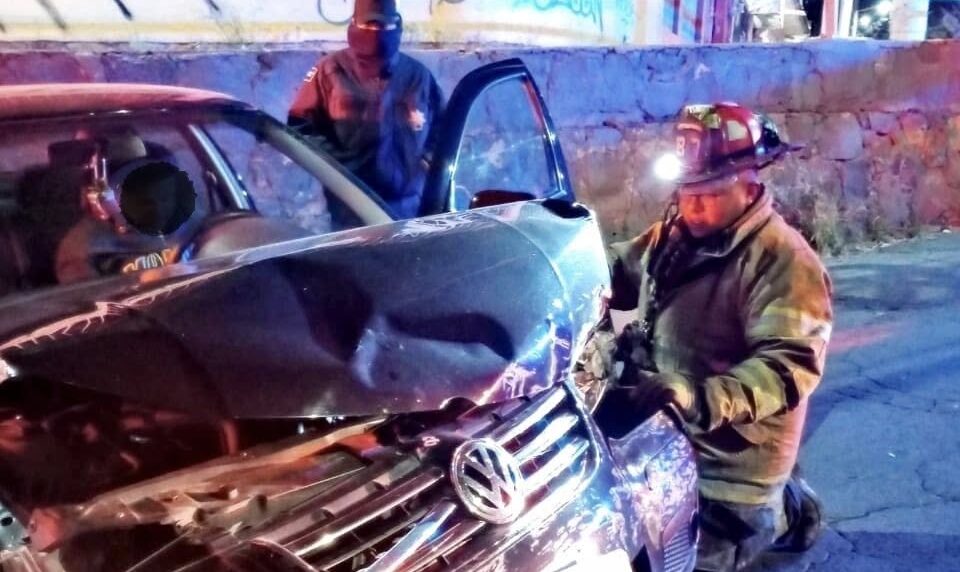 Paramédicos y rescatistas de la Coordinación Estatal de Protección Civil acudieron al sitio y localizaron un vehículo compacto de color oscuro con daños severos en la parte frontal, tras impactarse directamente contra un muro de contención.