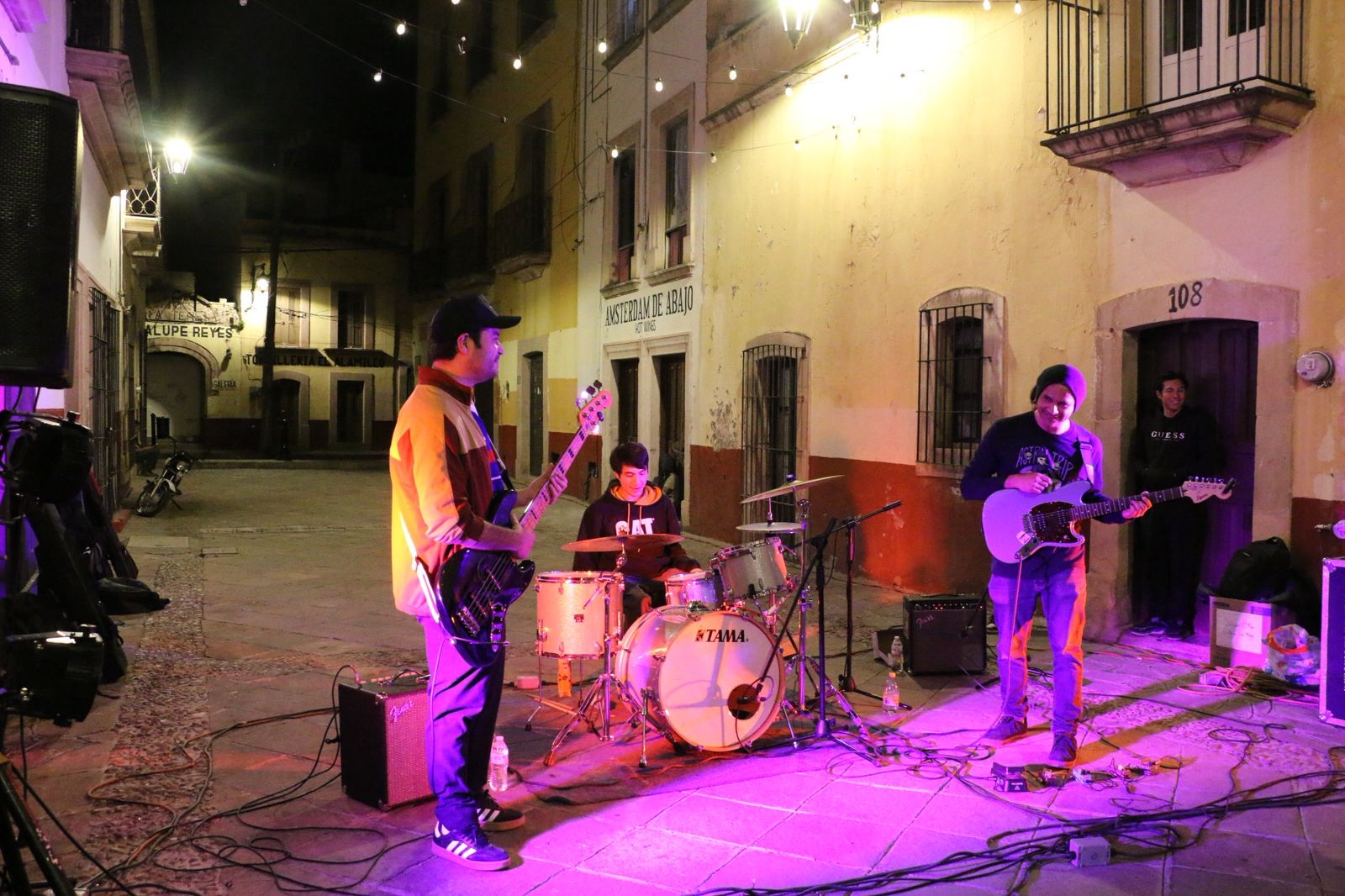 El público transitó entre ritmos y atmósferas contrastantes: QU Jazz, de la Universidad Autónoma de Zacatecas (UAZ), abrió con sonoridades académicas en la calle Doctor Ignacio Hierro, mientras que Pájaros Amapola cautivó con su mezcla de lo-fi, dream pop y jazz en el Callejón Luis Moya. En la Plazuela Genaro Codina, Ernesto Saldaña sumó el toque crudo del rock y el blues que marcó el pulso del atardecer.