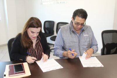 Titulares de SAMA y JIAPAZ, Susana Rodríguez Márquez y David Octavio García Flores, respectivamente, firmaron ambos convenios por un total de 8 millones 331 mil 676 pesos; la dependencia estatal aportará 60 por ciento y el resto el organismo operador.