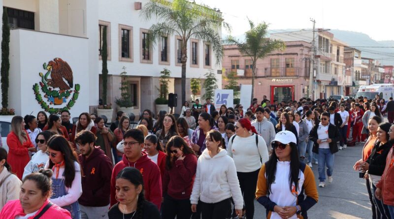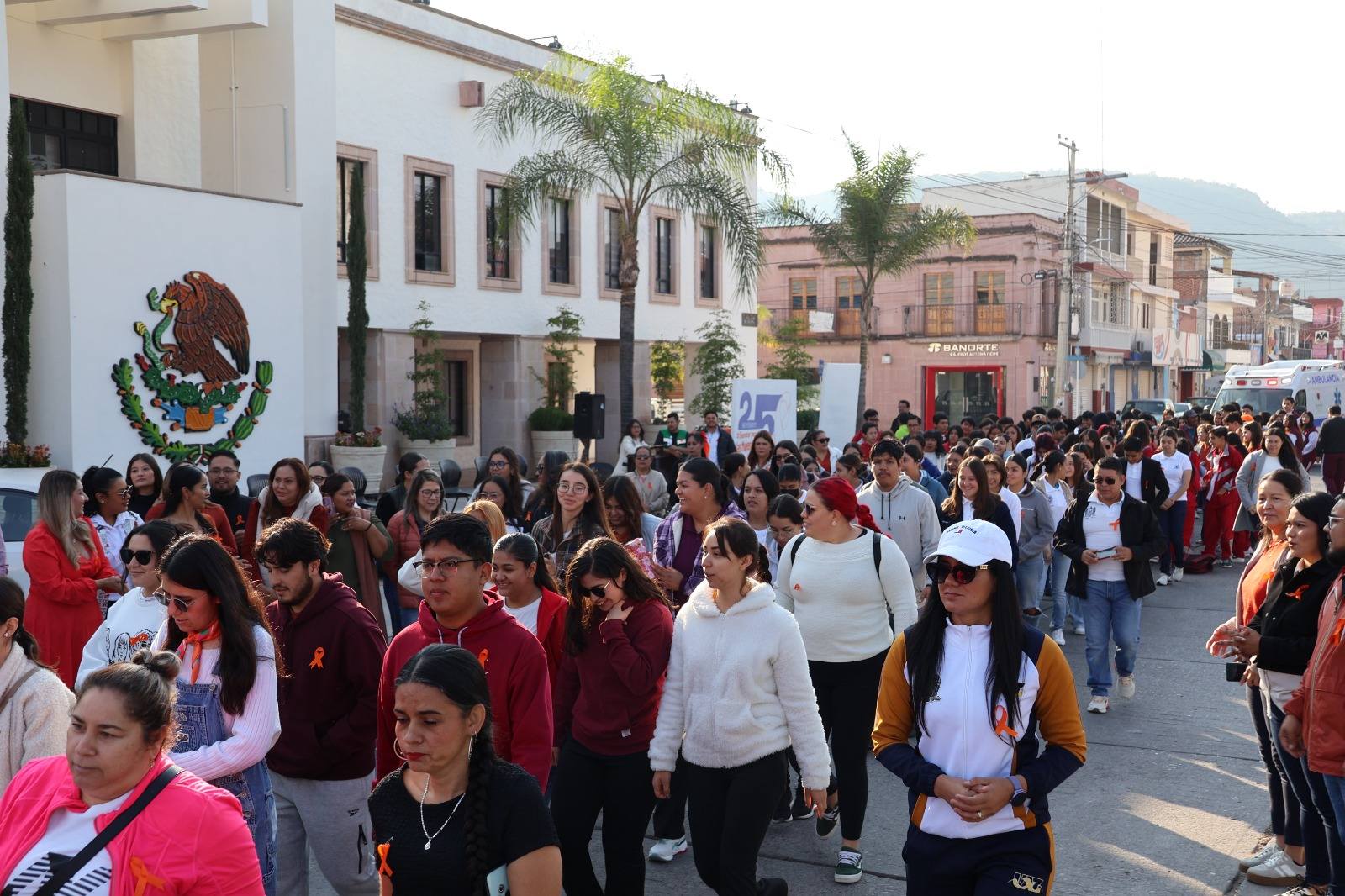 Jalpa, Zacatecas.– En el marco del Día Internacional de la Eliminación de la Violencia contra la Mujer, autoridades municipales, personal educativo y trabajadores del Ayuntamiento y del DIF Jalpa participaron este lunes en una caminata conmemorativa que recorrió las principales calles de la cabecera municipal.