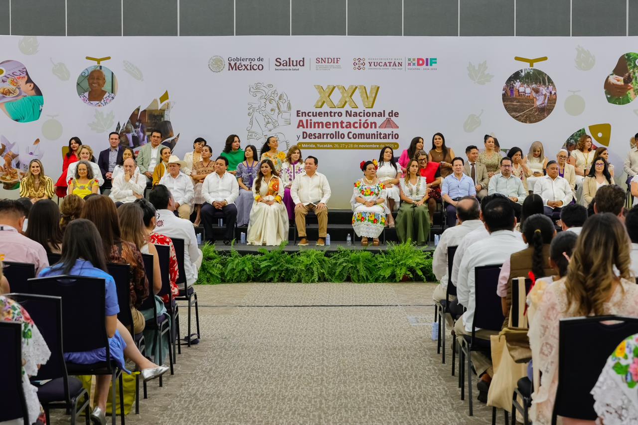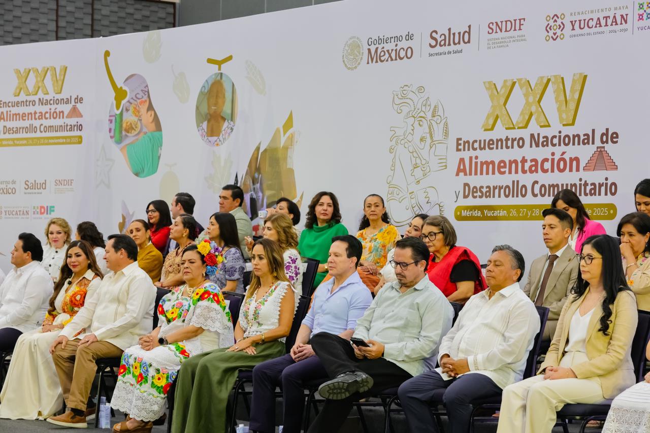 Mérida, Yuc., 26 de noviembre de 2025.- La Presidenta Honorífica del Sistema Estatal para el Desarrollo Integral de la Familia (SEDIF), Sara Hernández de Monreal, participa en el XXV Encuentro Nacional de Alimentación y Desarrollo Comunitario, convocado por el Sistema Nacional DIF.