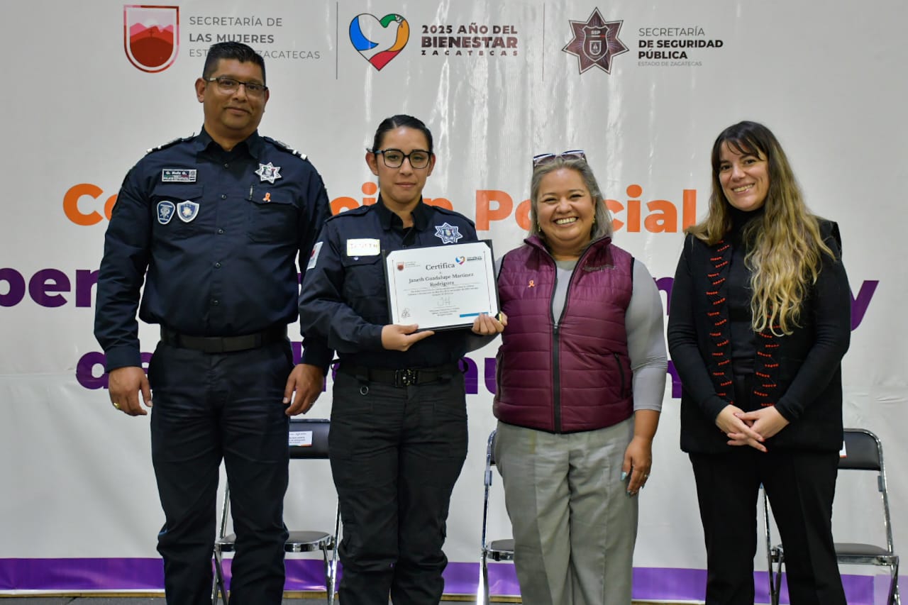 Zacatecas, Zac., 26 de noviembre de 2025.- Con el compromiso de fortalecer la actuación policial con enfoque humanista, profesional y sensible, concluyó el Curso de Capacitación en Perspectiva de Género y Derechos Humanos dirigido a 250 elementos de la Policía Estatal Preventiva, Policía Municipal, Policía Metropolitana y Policía de Seguridad Vial.