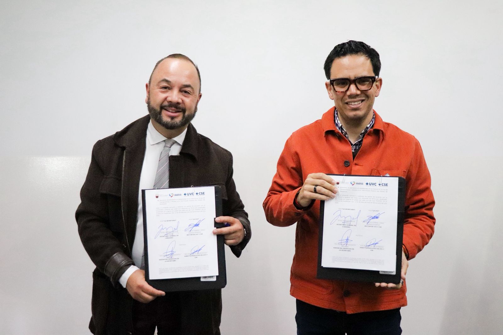 - El Secretario General de Gobierno, Rodrigo Reyes Mugüerza, y el responsable de la Universidad de la Vera-Cruz y del Colegio Santa Elena firmaron un convenio de colaboración