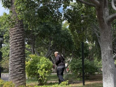 Tabasco, Zacatecas.— El Departamento de Obras Públicas, encabezado por el ingeniero Alejandro Ruiz, continúa con los trabajos de mantenimiento en diversos espacios del municipio. En esta ocasión, las cuadrillas realizaron labores de poda y arreglo en el Jardín Principal, con el objetivo de mantener el área en óptimas condiciones para el uso de la ciudadanía.