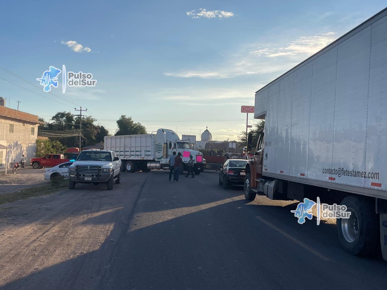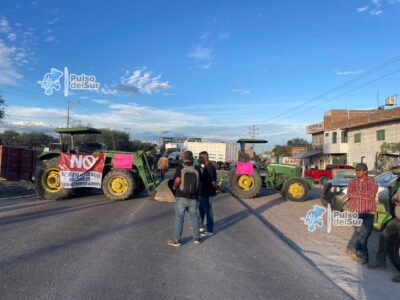 Jalpa, Zacatecas.– La tarde de este miércoles 3 de diciembre, productores agrícolas de la región instalaron un bloqueo total sobre la carretera federal 54, a la altura del Oxxo del crucero de San Bernardo, en la salida norte de Jalpa con dirección a Zacatecas. Con tractores, remolques y maquinaria agrícola atravesada sobre ambos carriles, los manifestantes impidieron el paso vehicular como parte del movimiento nacional en rechazo al dictamen de la nueva Ley General de Aguas y las reformas a la Ley de Aguas Nacionales.
