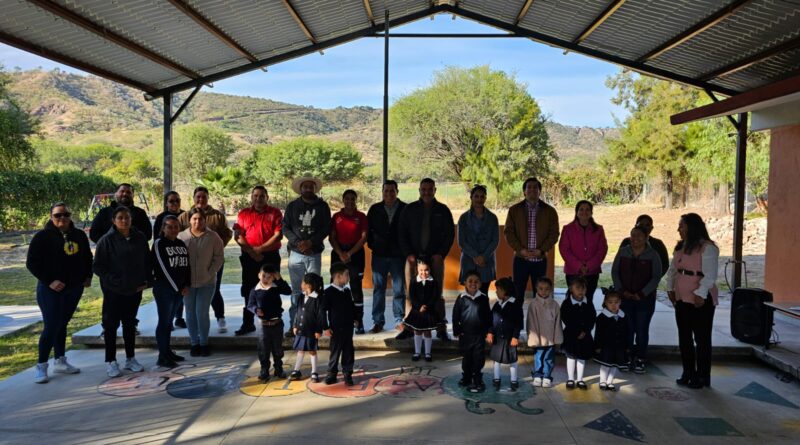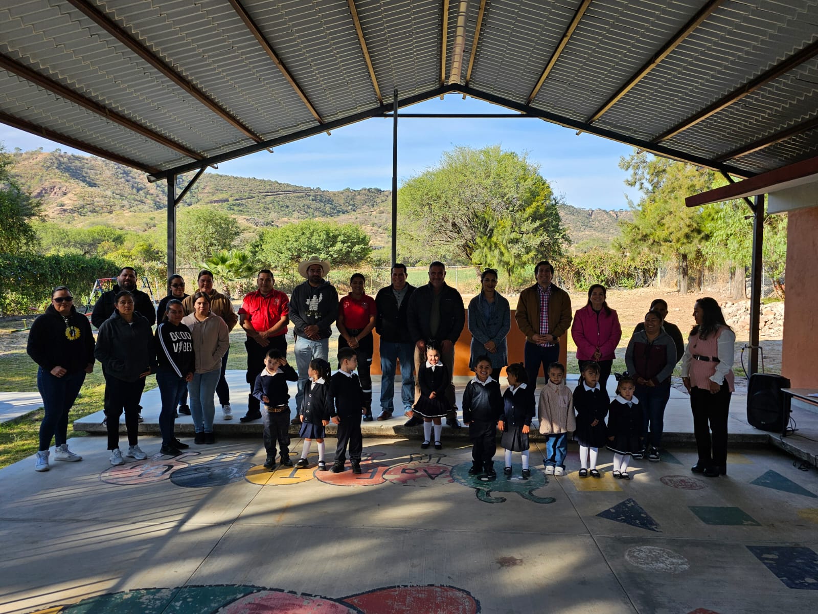 Jalpa, Zacatecas.– Este jueves se entregaron de manera oficial los trabajos de mejora realizados en el jardín de niños de la comunidad de San Bernardo, atendiendo la solicitud presentada por padres de familia y personal docente al presidente municipal Olegario Viramontes.