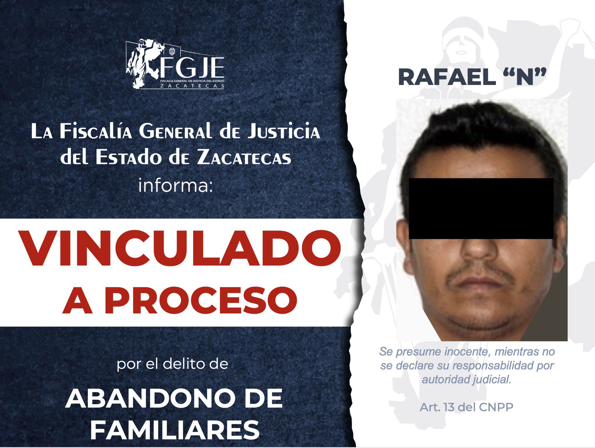 Zacatecas, Zacatecas. – La Fiscalía Especializada en Atención de Delitos contra las Mujeres por Razones de Género informó que un juez de control vinculó a proceso a Rafael N, señalado por el delito de abandono de familiares en agravio de una persona en el municipio de Zacatecas.