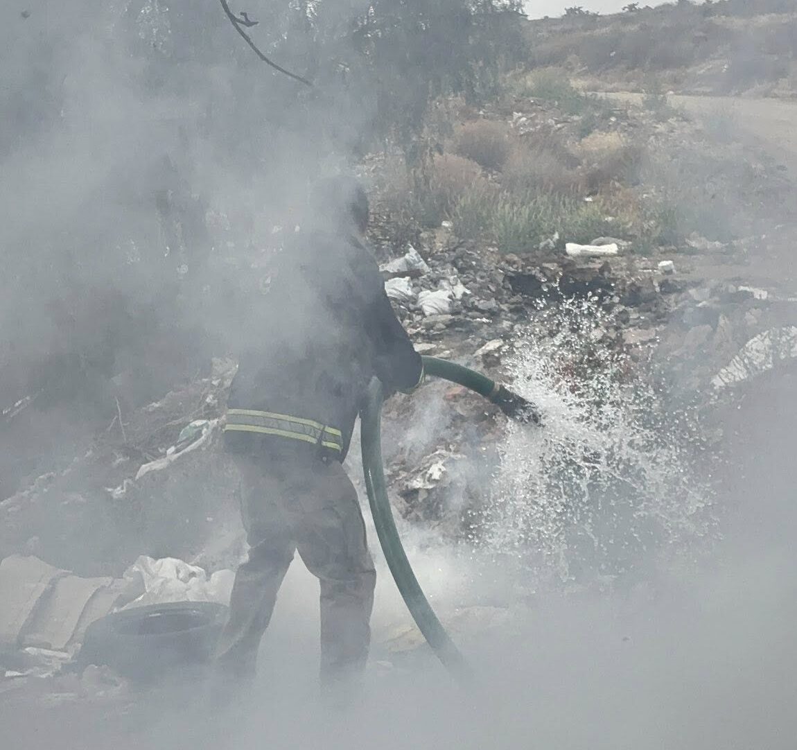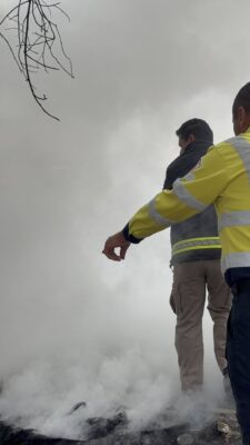 Zacatecas, Zac.- Elementos de Protección Civil del Estado atendieron de manera inmediata un incendio de basura y llantas registrado en la zona de Bracho, un incidente que representaba un serio riesgo ambiental y de salud debido a los gases tóxicos generados por este tipo de quema.