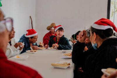 Como parte de la convivencia, se dispersaron apoyos invernales como cobijas, chalecos, chamarras y chales, así como paquetes alimentarios y bolos, que simbolizan la tradición y el cariño característicos de estas fechas.