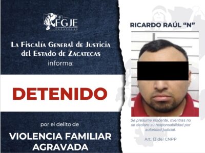 En Fresnillo, Francisco Javier N fue detenido por violencia familiar, mientras que Edgar Eliseo N fue asegurado por robo equiparado. En este mismo municipio se cumplimentó una orden de comparecencia en contra de Ricardo N por violencia familiar y lesiones.