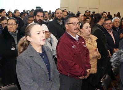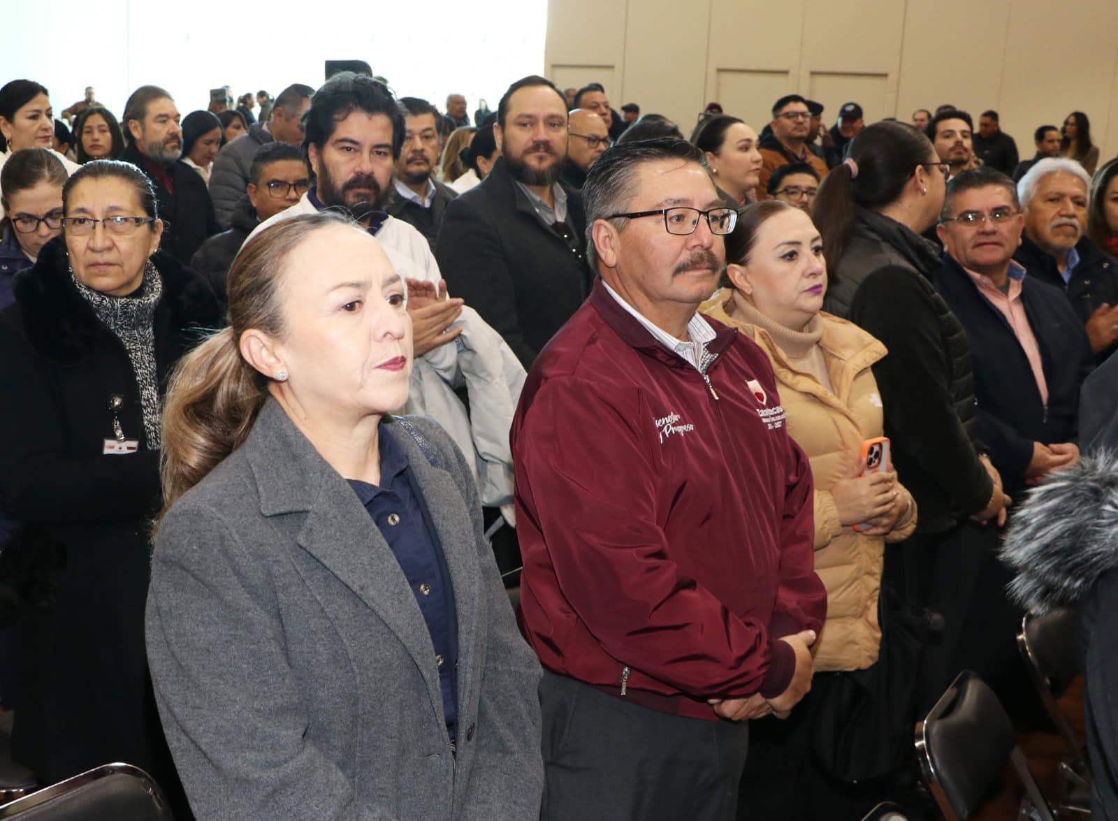 El Secretario de Salud del estado, Uswaldo Pinedo Barrios, acompañó al Gobernador David Monreal Ávila en la ceremonia de Honores a la Bandera, realizada en el Palacio de Convenciones, acto cívico que reafirma el compromiso de las autoridades estatales con los valores patrios y la identidad nacional.