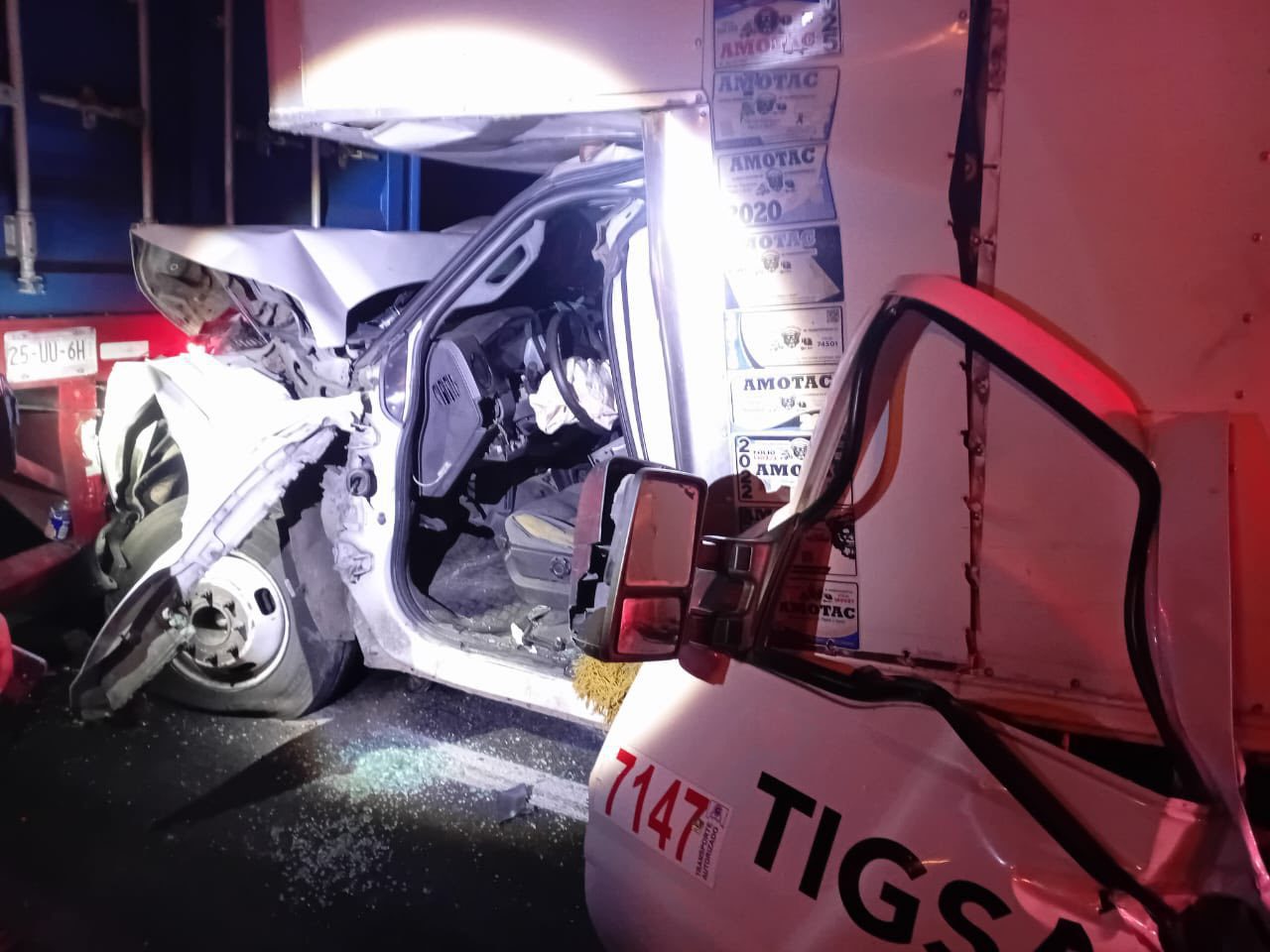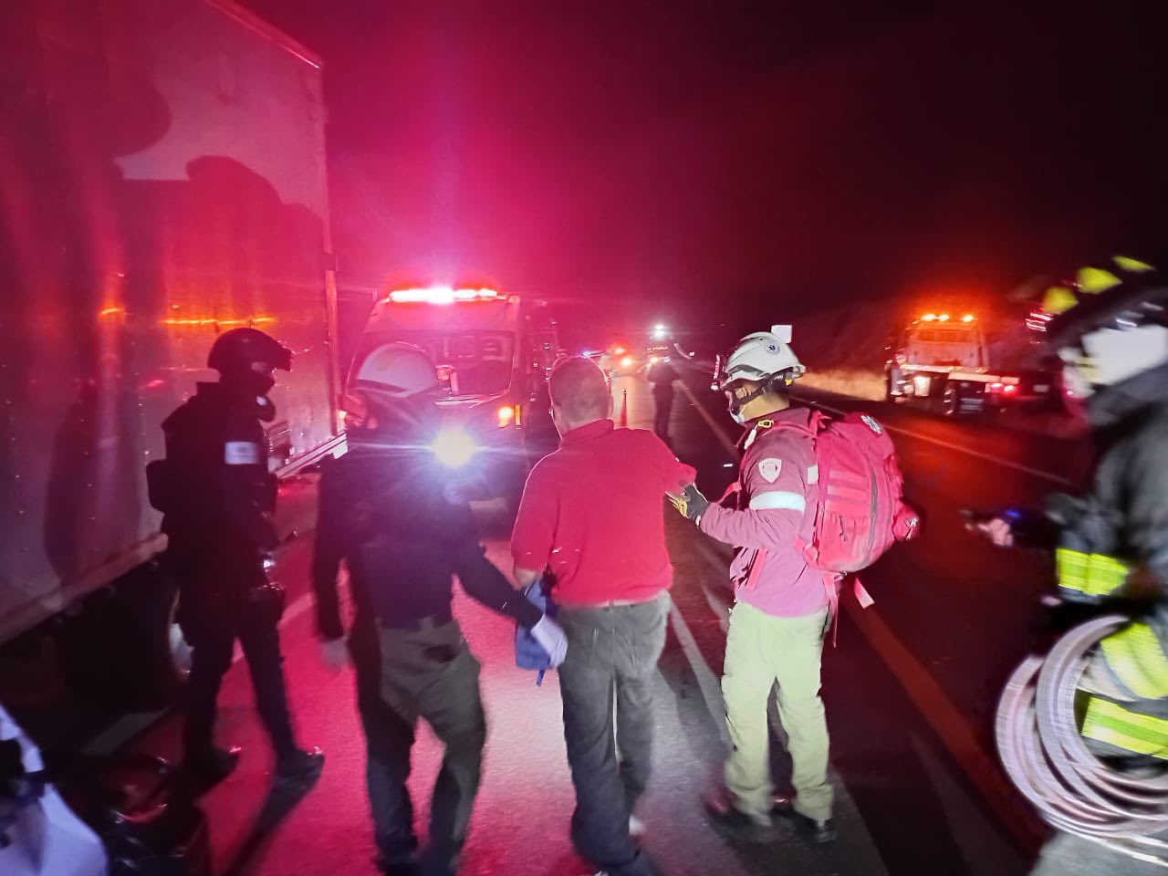 Aguascalientes–Zacatecas.- Durante la madrugada del lunes, cuerpos de emergencia atendieron un accidente registrado en el kilómetro 86 de la carretera federal 45, en el tramo Aguascalientes–Zacatecas, donde una camioneta de carga ligera impactó por alcance a un tráiler.