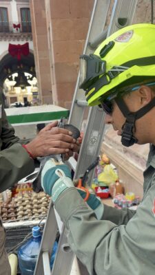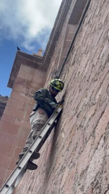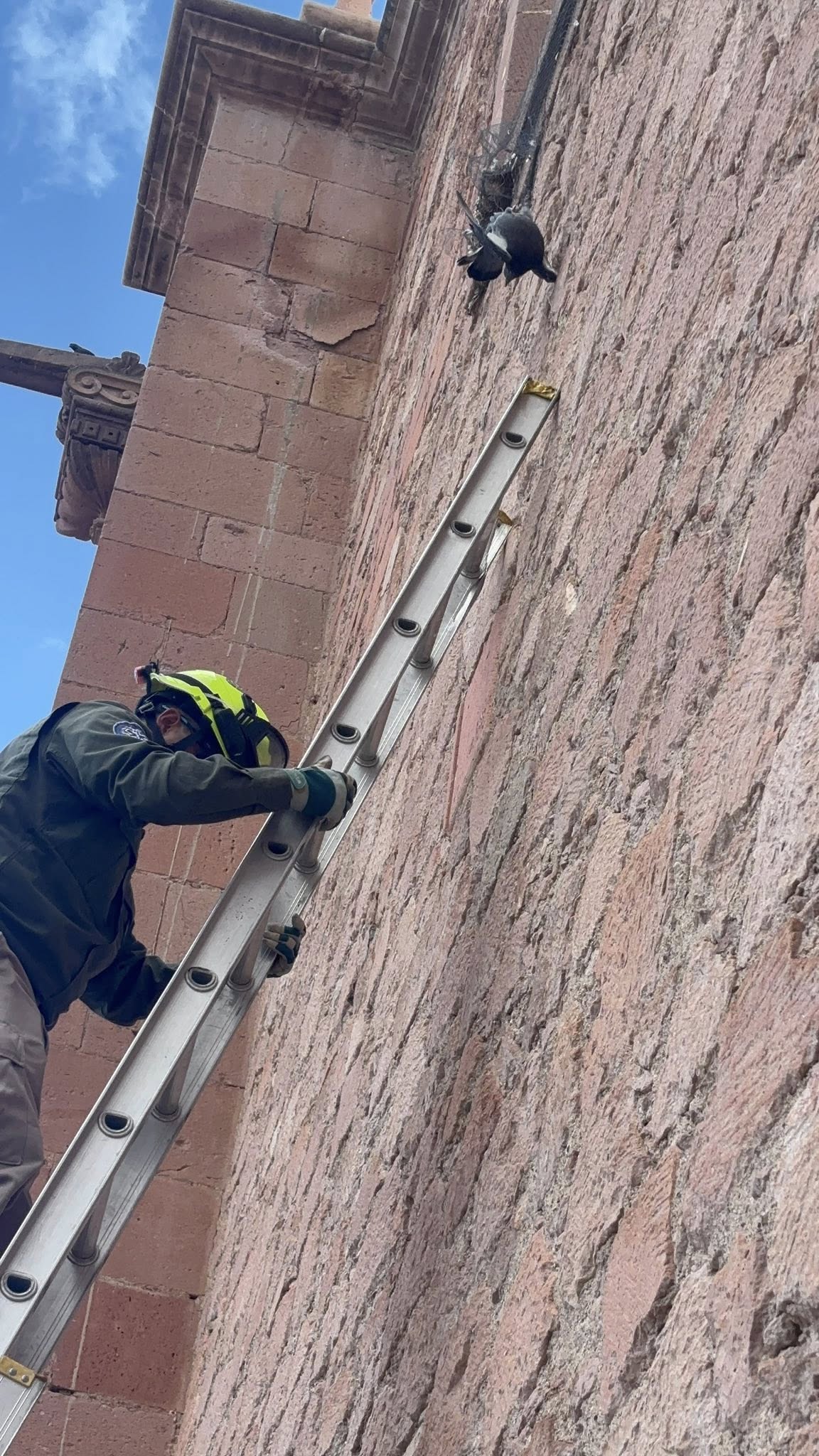 Zacatecas, Zac.– Personal operativo atendió un reporte ciudadano en la Catedral del Centro, donde una paloma se encontraba atrapada en una malla de la estructura, sin posibilidad de liberarse por sus propios medios.