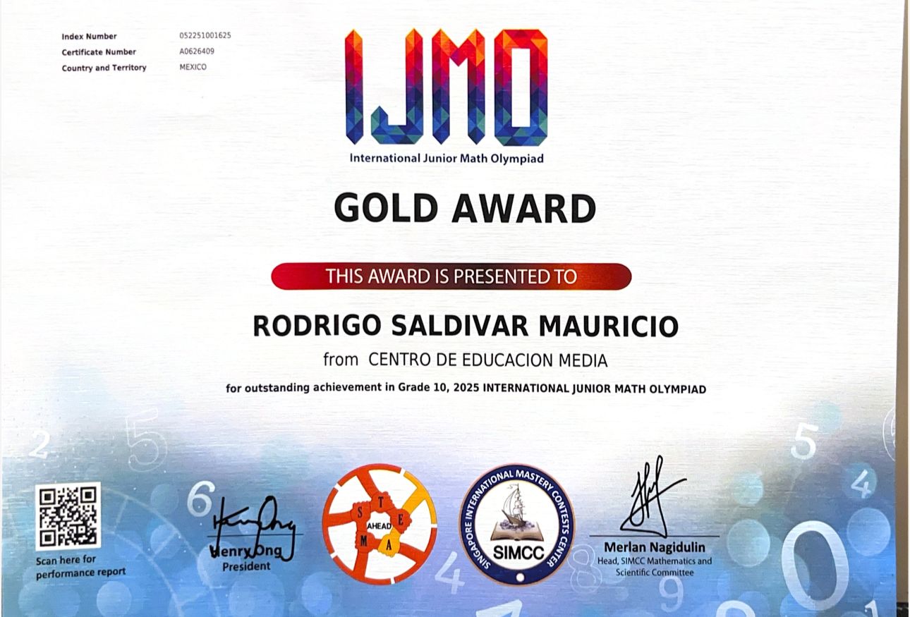 El alumno, orgullosamente originario de Aguascalientes, representó a México en esta competencia internacional, en la que participó dentro de la categoría de estudiantes de preparatoria, logrando el máximo reconocimiento tras demostrar un alto nivel de conocimientos, disciplina y capacidad analítica.