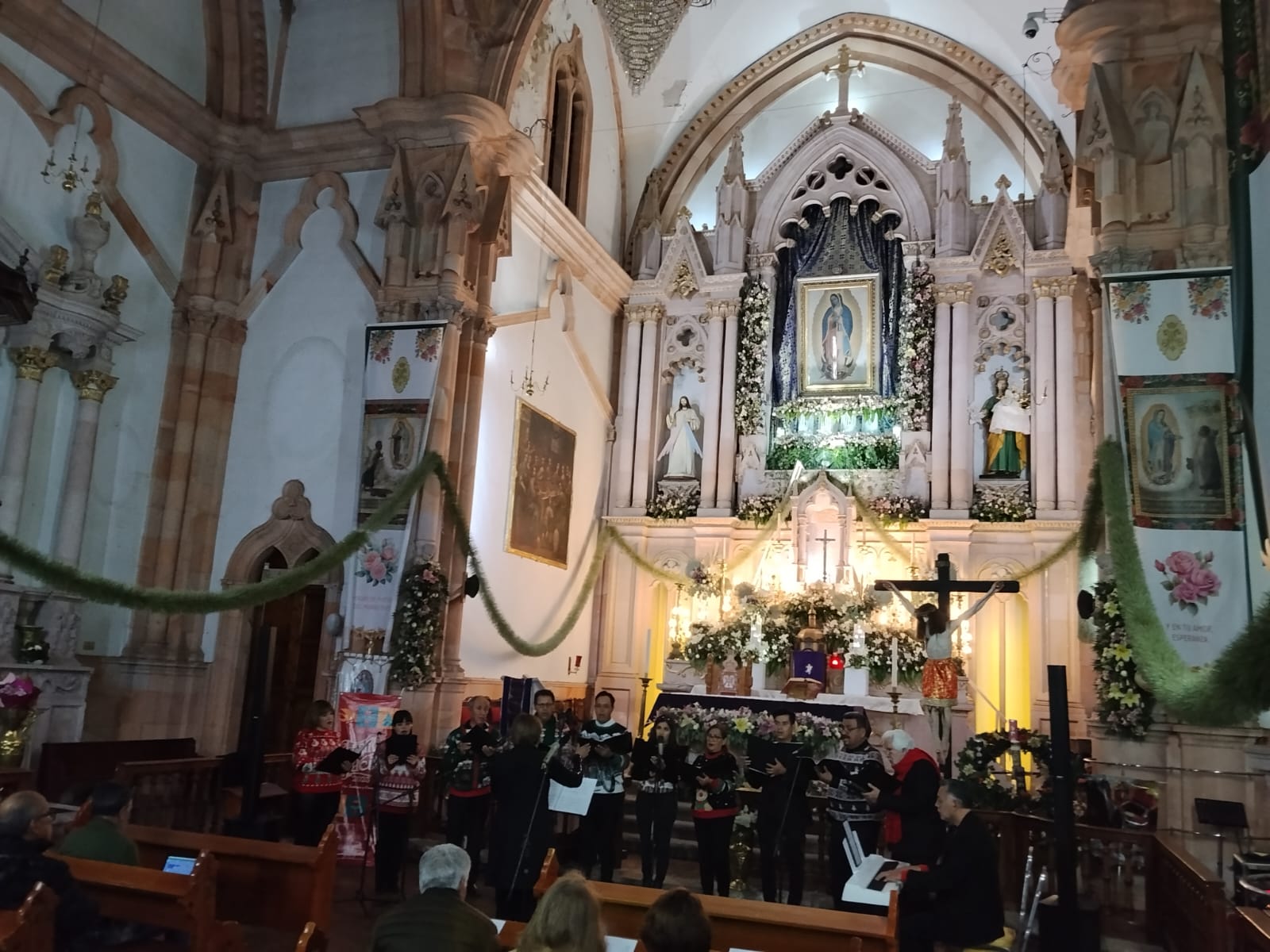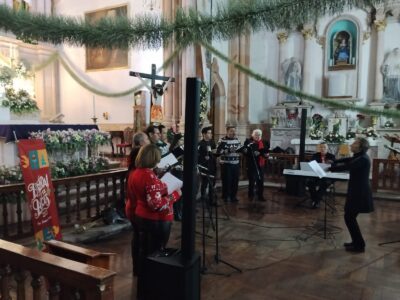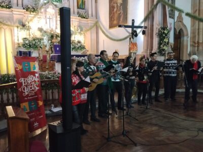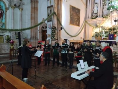 Zacatecas, Zac., 19 de diciembre de 2025.- Como parte del programa del Festival de Luces 2025, organizado por el Gobierno del Estado, a través del Instituto Zacatecano de Cultura (IZC), el Ensamble Voces del Alma ofreció un emotivo Concierto de Navidad, en el Templo de Nuestra Señora de Guadalupito, con un repertorio que celebró la esperanza, la espiritualidad y la fraternidad, propias de esta época.