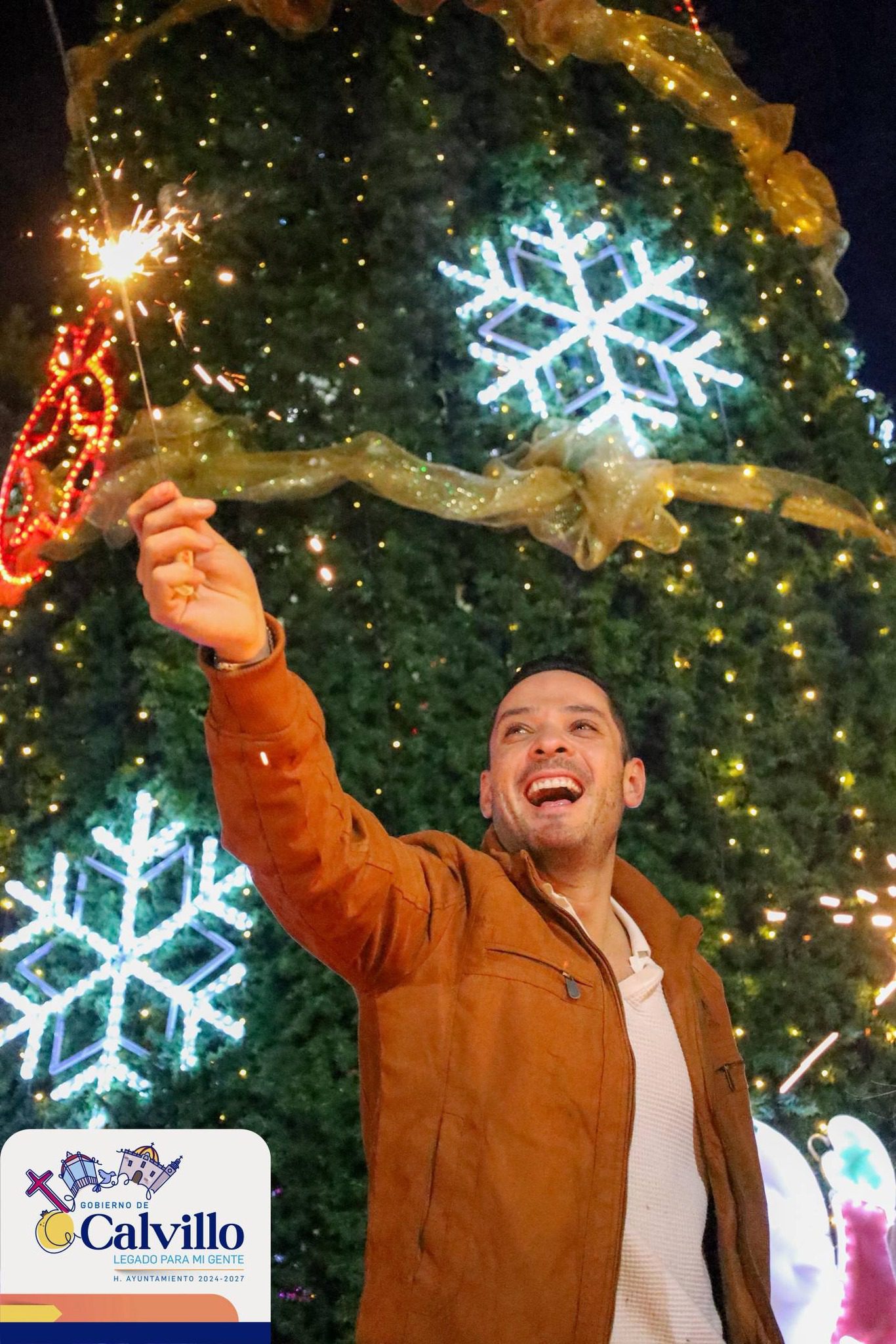 Calvillo, Aguascalientes. – El Gobierno de Calvillo llevó a cabo el tradicional encendido del Árbol Navideño y de la iluminación decorativa en la plaza principal de este Calvillo, como parte de las actividades decembrinas.