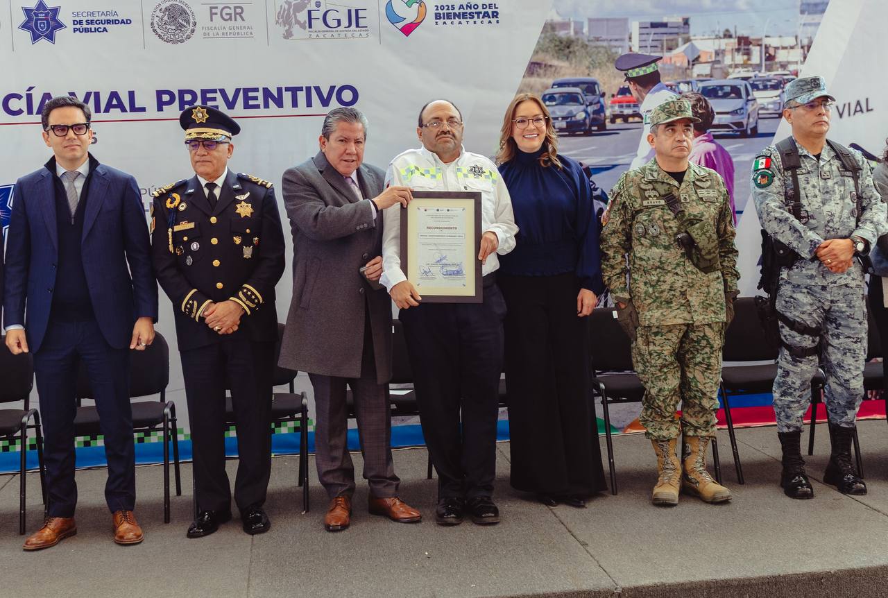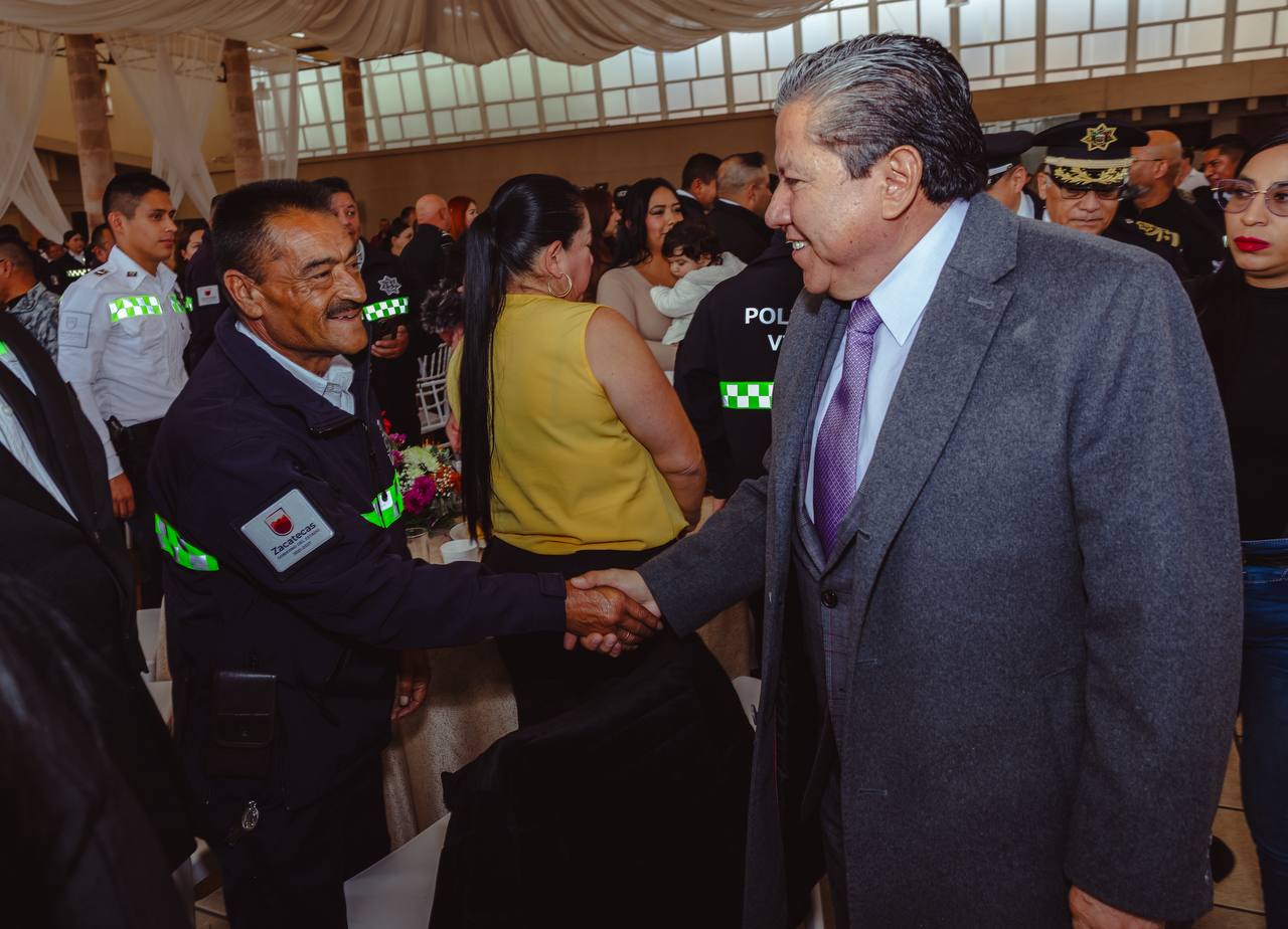 Durante el evento, efectuado en la capital zacatecana, el mandatario otorgó reconocimientos por 30 o más años de servicio a Armando Gómez Rodríguez, Juan Francisco Guerrero Vega, Roberto Rodríguez Menchaca y Luis Martín Menchaca Vela. Además, entregó nuevos uniformes al personal operativo, como parte del proceso de dignificación y fortalecimiento de la corporación.