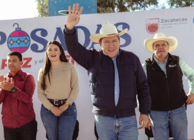 En esta comunidad del municipio de Fresnillo, el mandatario estatal encabezó la Posada de la Paz y el Bienestar, en la que entregó despensas del programa Corazón Contento y reiteró su compromiso con el desarrollo de las comunidades más vulnerables.