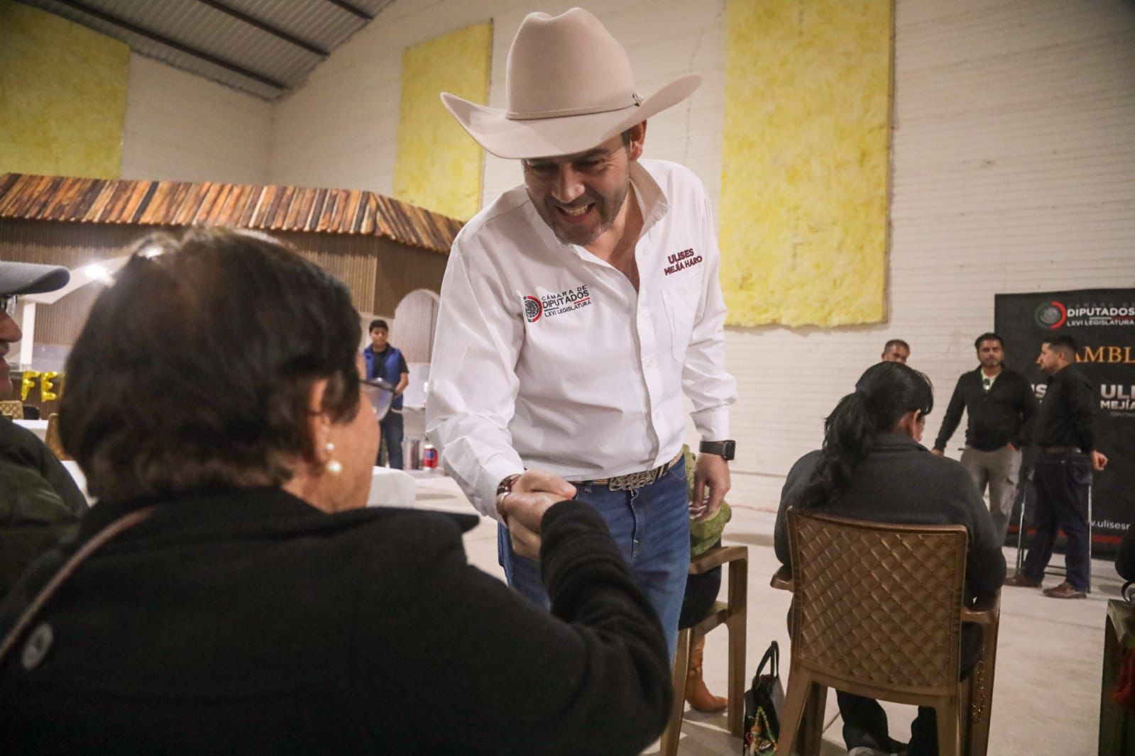 Miguel Auza, Zacatecas. – En su recorrido por el norte del estado, el diputado federal Ulises Mejía Haro visitó el municipio de Miguel Auza, donde sostuvo un encuentro con productores de frijol de la región, maestras, maestros y comerciantes. El tema central de la asamblea informativa fue la situación del campo y, de manera especial, el seguimiento a la puesta en marcha del sistema de acopio que fortalece la comercialización del grano por parte del Gobierno de México.