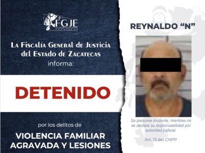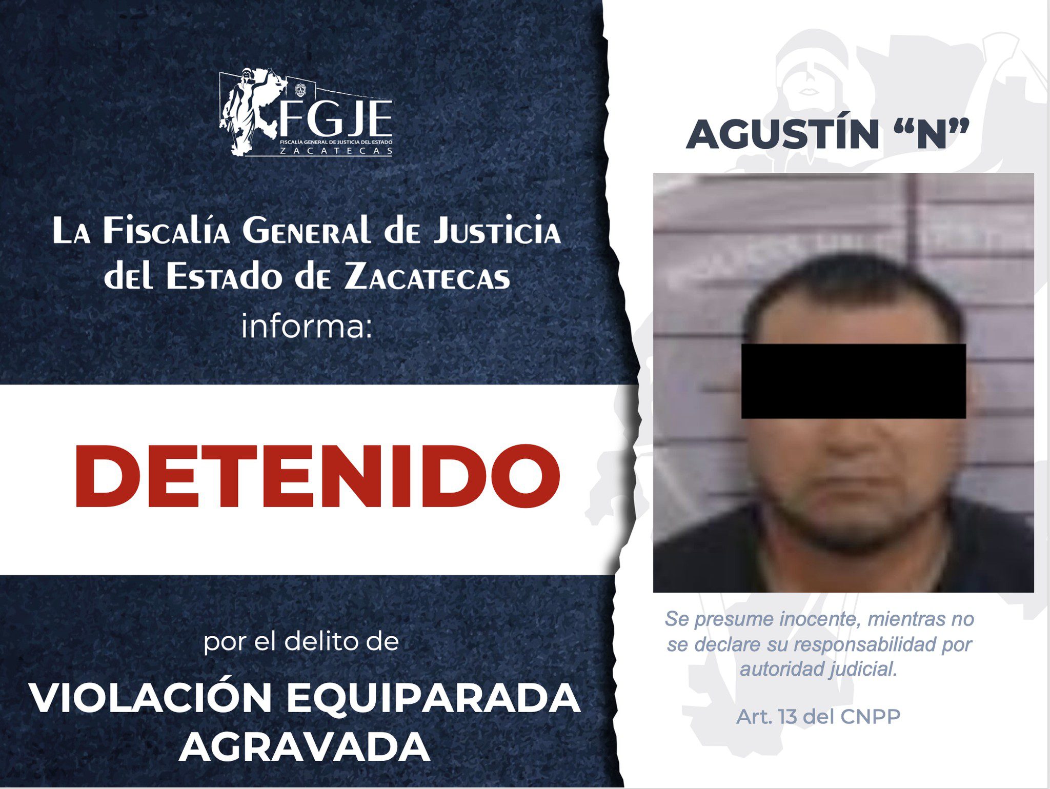 Asimismo, en Aguascalientes fue detenido Agustín N, por el delito de violación equiparada agravada, mientras que en Fresnillo fue cumplimentada la orden de aprehensión contra Reynaldo N, señalado por violencia familiar agravada y lesiones. Todos ellos fueron puestos a disposición del órgano jurisdiccional correspondiente.
