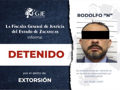 Las personas detenidas fueron identificadas como Rodolfo N, asegurado en Zacatecas por el delito de extorsión; Ulises Eduardo N, José Armando N, Eustergio N y Nayeli Saraí N, localizados también en el municipio de Zacatecas, quienes eran requeridos por los delitos de atentados a la seguridad de la comunidad, asociación delictuosa y cohecho.