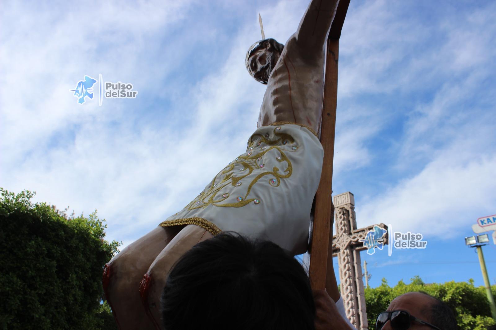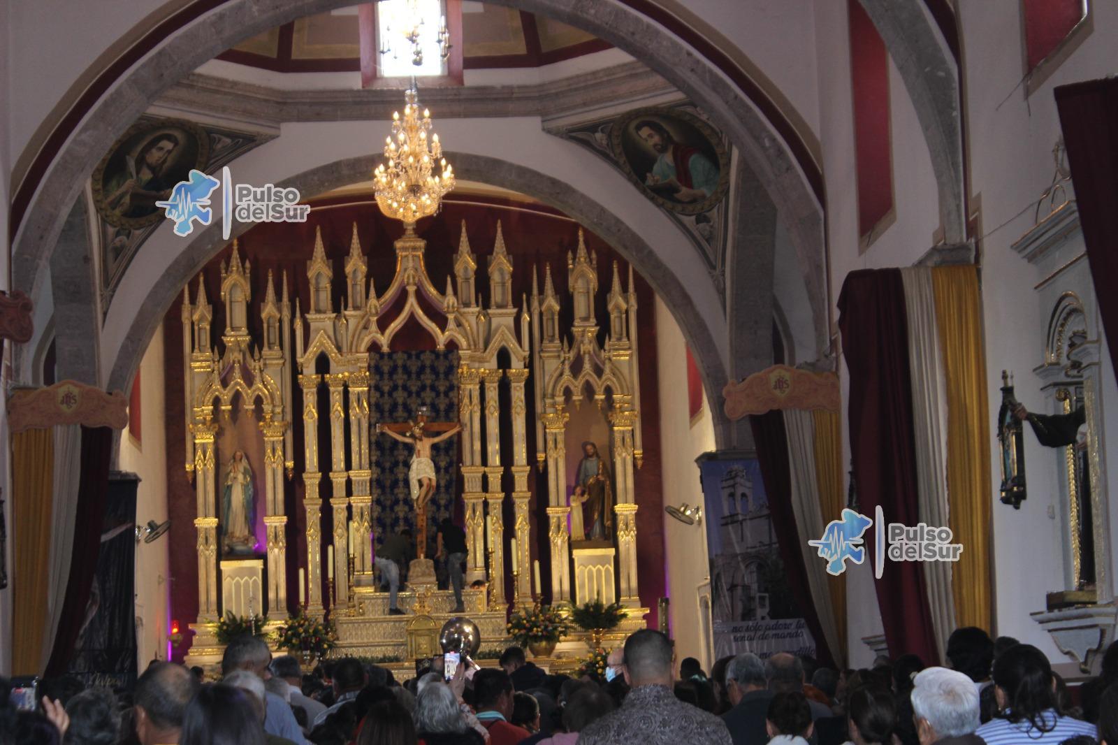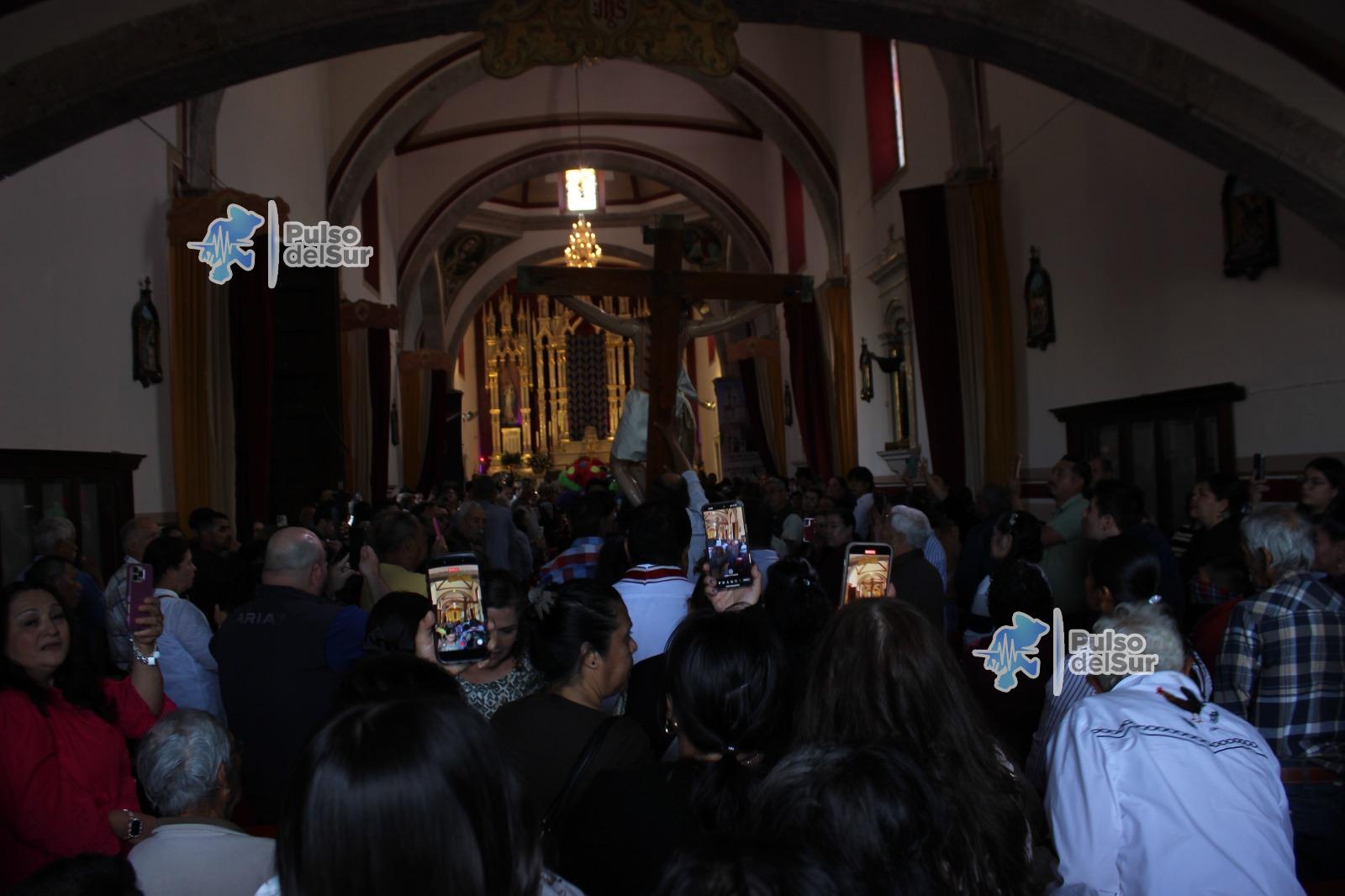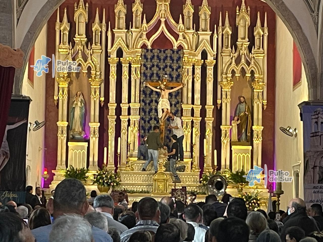 Sin embargo, este año ocurrió algo especial: el Cristo original fue cuidadosamente descendido y colocado en la entrada del templo para recibir a los fieles en su día. La réplica realizó el recorrido tradicional por las calles y, al finalizar, la imagen original fue devuelta a su altar.