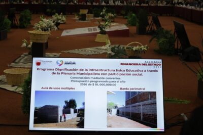 Explicó que este modelo se implementa a través de la Asamblea Financiera del Estado con Participación Social, que permite establecer convenios para la construcción y rehabilitación de espacios educativos en diversas modalidades.