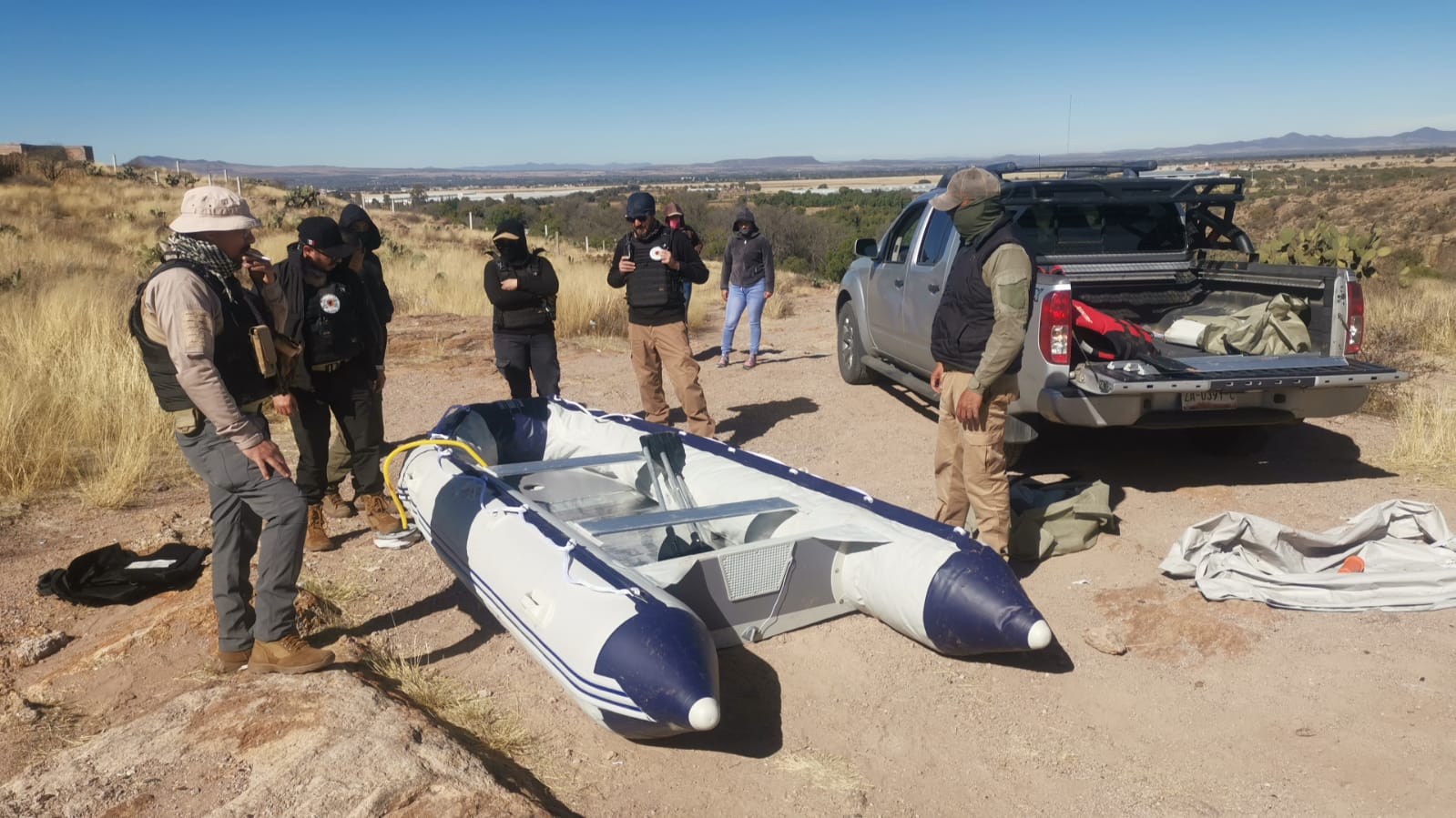 Loreto, Zac., 23 de enero de 2026.- Con el acompañamiento de representantes de colectivos de familias de personas desaparecidas, autoridades estatales realizaron una prospección forense en la presa de San Marcos, de este municipio, y el de Villa García.
