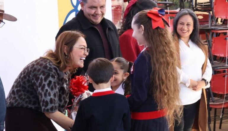 Jerez, Zacatecas. — En el marco de la entrega de uniformes escolares en la Escuela Primaria Francisco García Salinas, la senadora Vero Díaz, integrante de la Comisión de Bienestar, anunció una inversión aproximada de 600 mil pesos para este plantel a través del programa federal La Escuela es Nuestra, que se aplicará durante el ejercicio fiscal 2026.