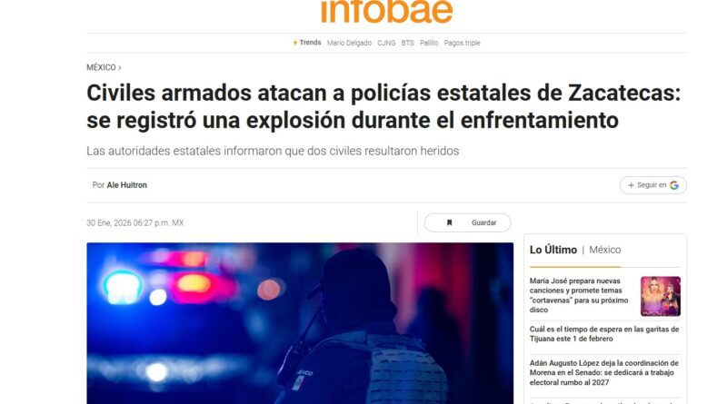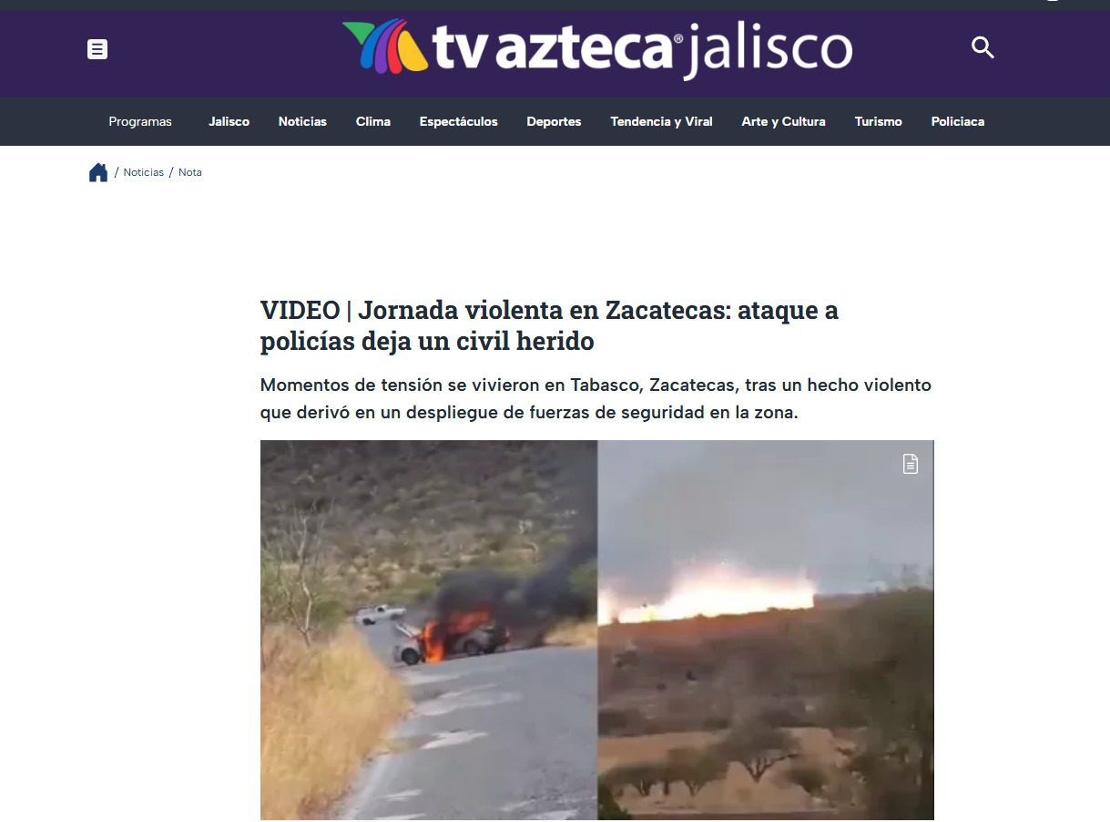 Tabasco / Jalpa, Zacatecas.– A tres días de la agresión armada registrada el viernes 30 de enero durante un operativo de seguridad en la región sur de Zacatecas, no se han reportado nuevos enfrentamientos; sin embargo, persiste un clima de incertidumbre en municipios como Tabasco y Jalpa, donde en días posteriores se registraron hechos que generaron alerta entre la población.
