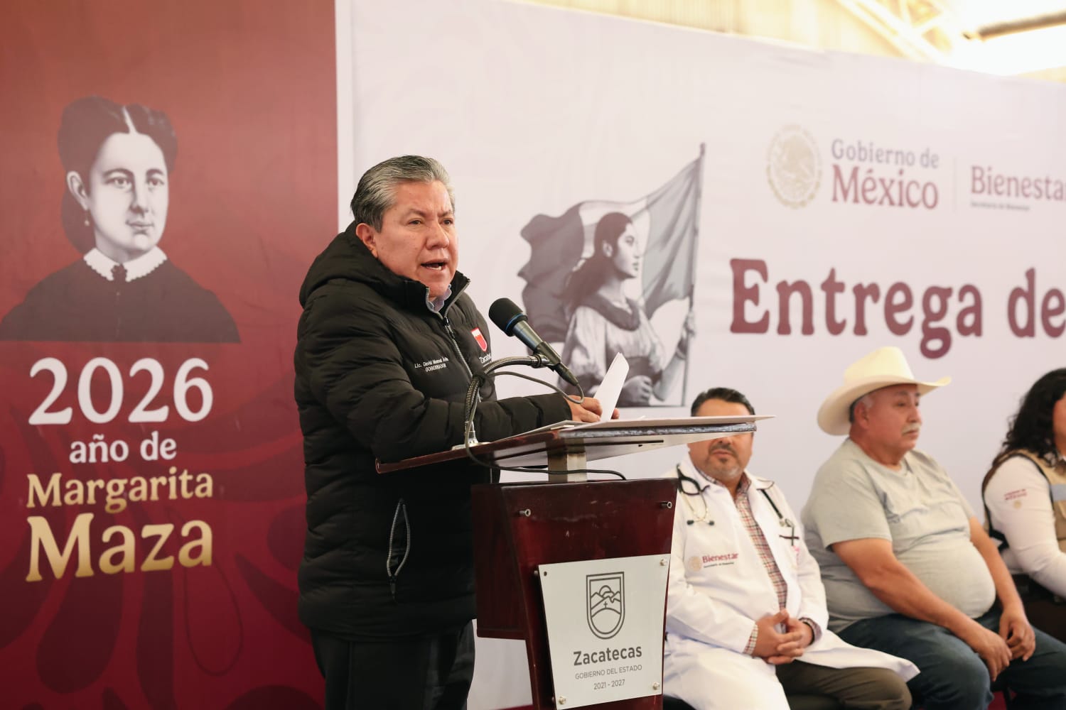 Fresnillo, Zac., 12 de febrero de 2026.- Al hacer entrega de tarjetas del Bienestar para beneficiarios de los programas de Adultos Mayores y Mujeres, el Gobernador David Monreal Ávila destacó que, en la reunión que se sostuvo con la Presidenta de la República, Claudia Sheinbaum Pardo, para dar atención a la emergencia sanitaria que enfrenta el país, se informó que Zacatecas se mantiene con cero casos de sarampión en 2026.