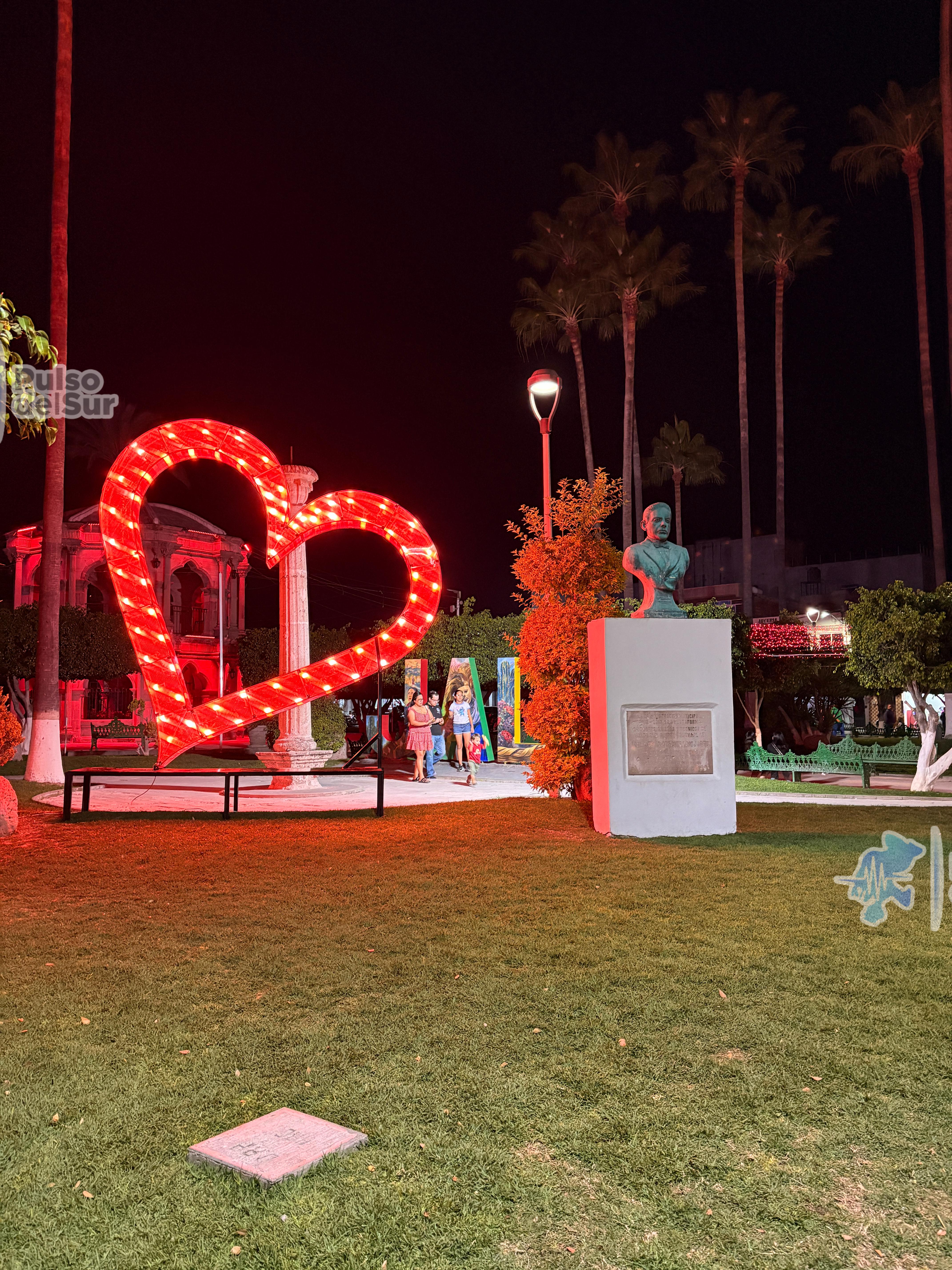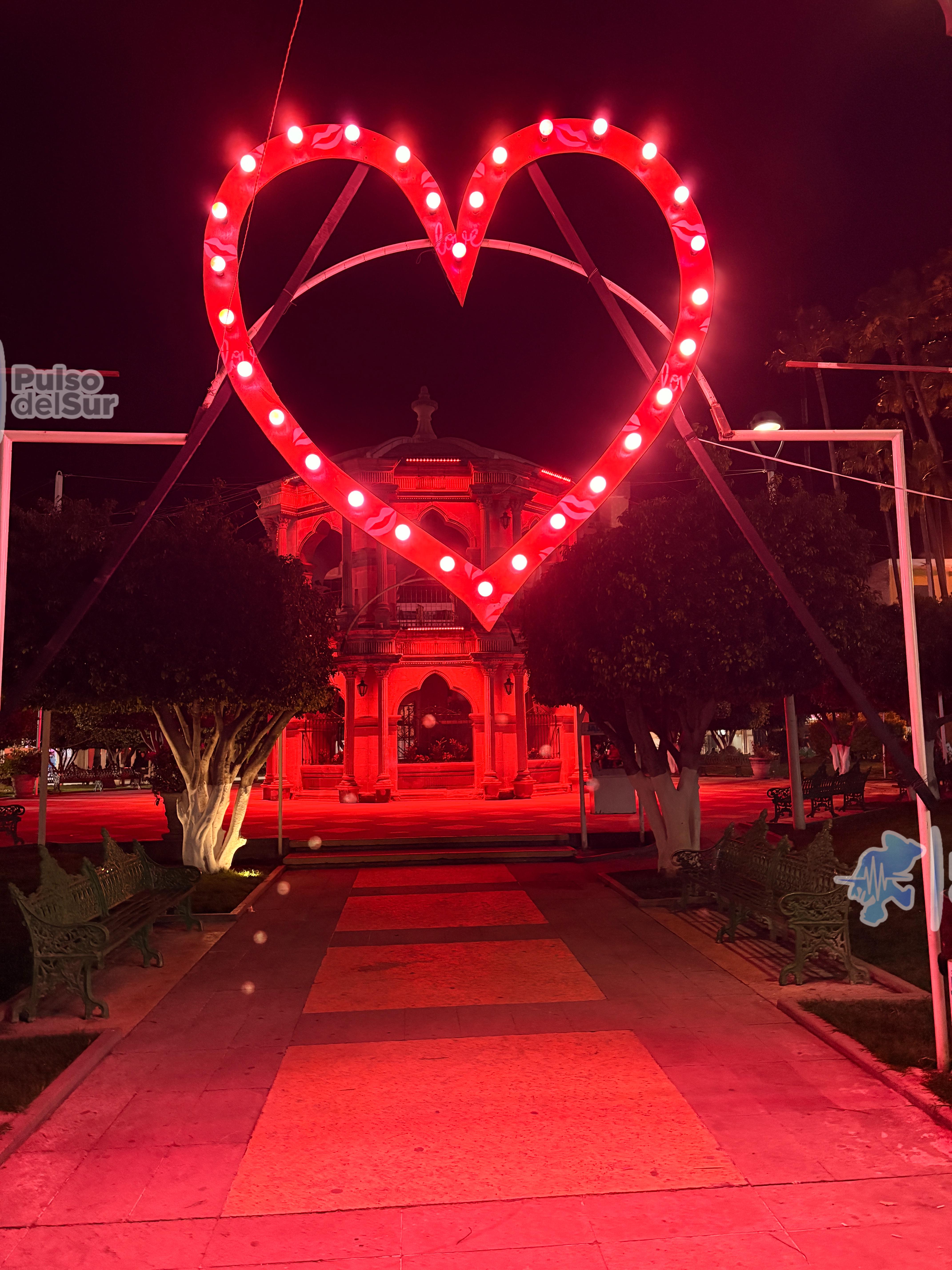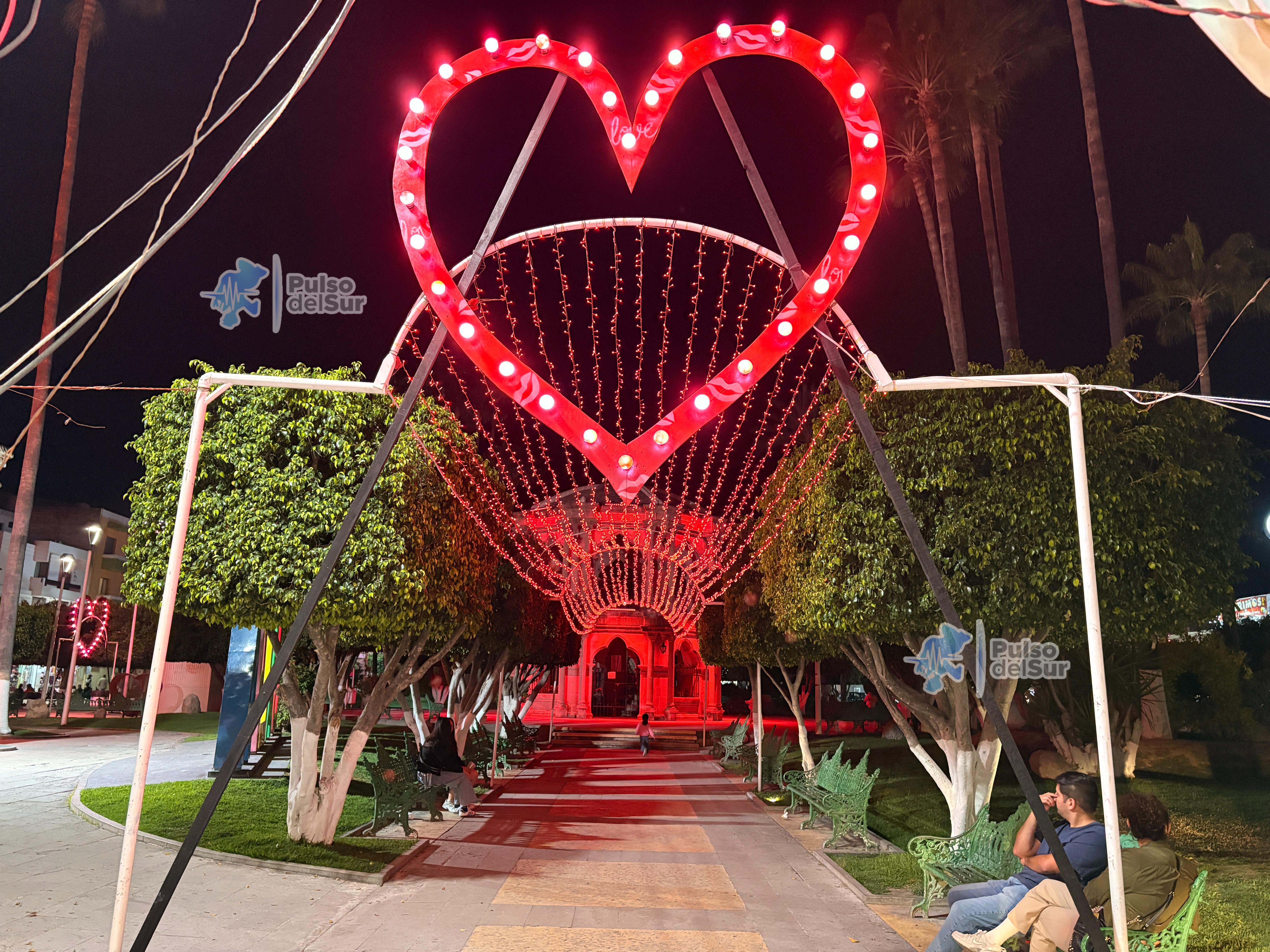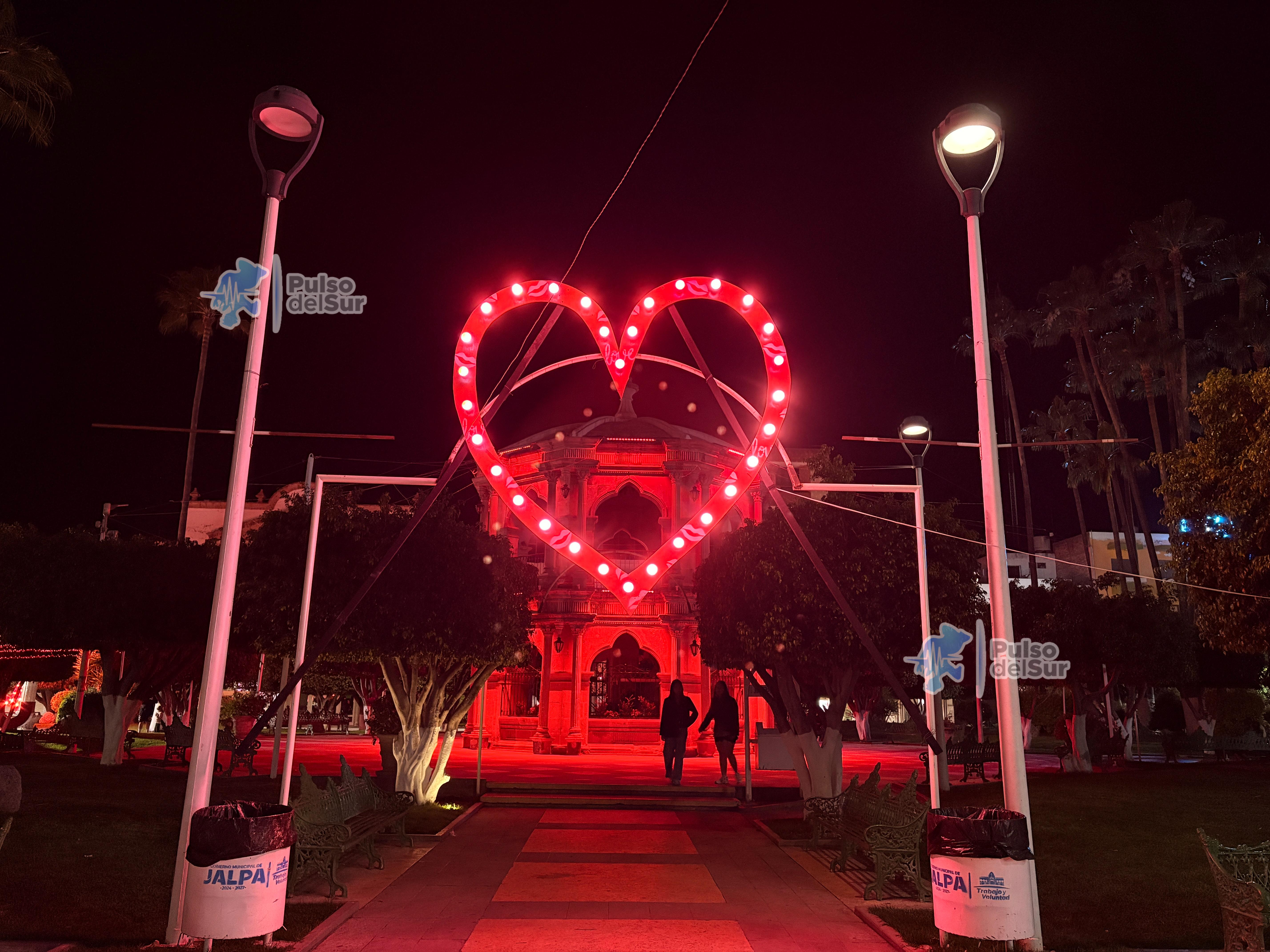 En la Jalpa, la Plaza Principal y el edificio de la Presidencia Municipal ya lucen luces rojas alusivas a la fecha, así como grandes corazones distribuidos en distintos puntos del espacio público, como parte del ambiente conmemorativo.