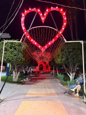 Jalpa, Zacatecas. – El Gobierno de Jalpa dio inicio a los preparativos con motivo del Día del Amor y la Amistad, mediante la colocación de iluminación y elementos decorativos en el primer cuadro del municipio.