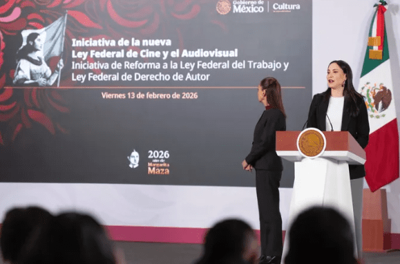 Ciudad de México, 13 de febrero de 2026.- La Presidenta de México, Claudia Sheinbaum Pardo, presentó las iniciativas de la Ley Federal de Cine y el Audiovisual, que tiene como objetivo promocionar y fomentar a la industria nacional, así como de la Reforma a la Ley Federal del Trabajo y a la Ley Federal de Derecho de Autor, que protege el trabajo de los actores de doblaje ante el uso de la Inteligencia Artificial (IA).