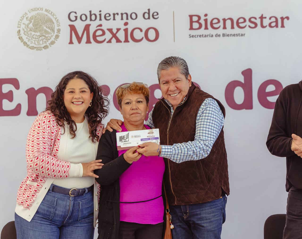 Durante el evento, beneficiarios como Juana Castillo López y Gregorio Guardado Ruiz Esparza recibieron sus tarjetas del Banco del Bienestar, quienes agradecieron al Gobierno de México y al de Zacatecas por el respaldo que representa para su economía familiar.