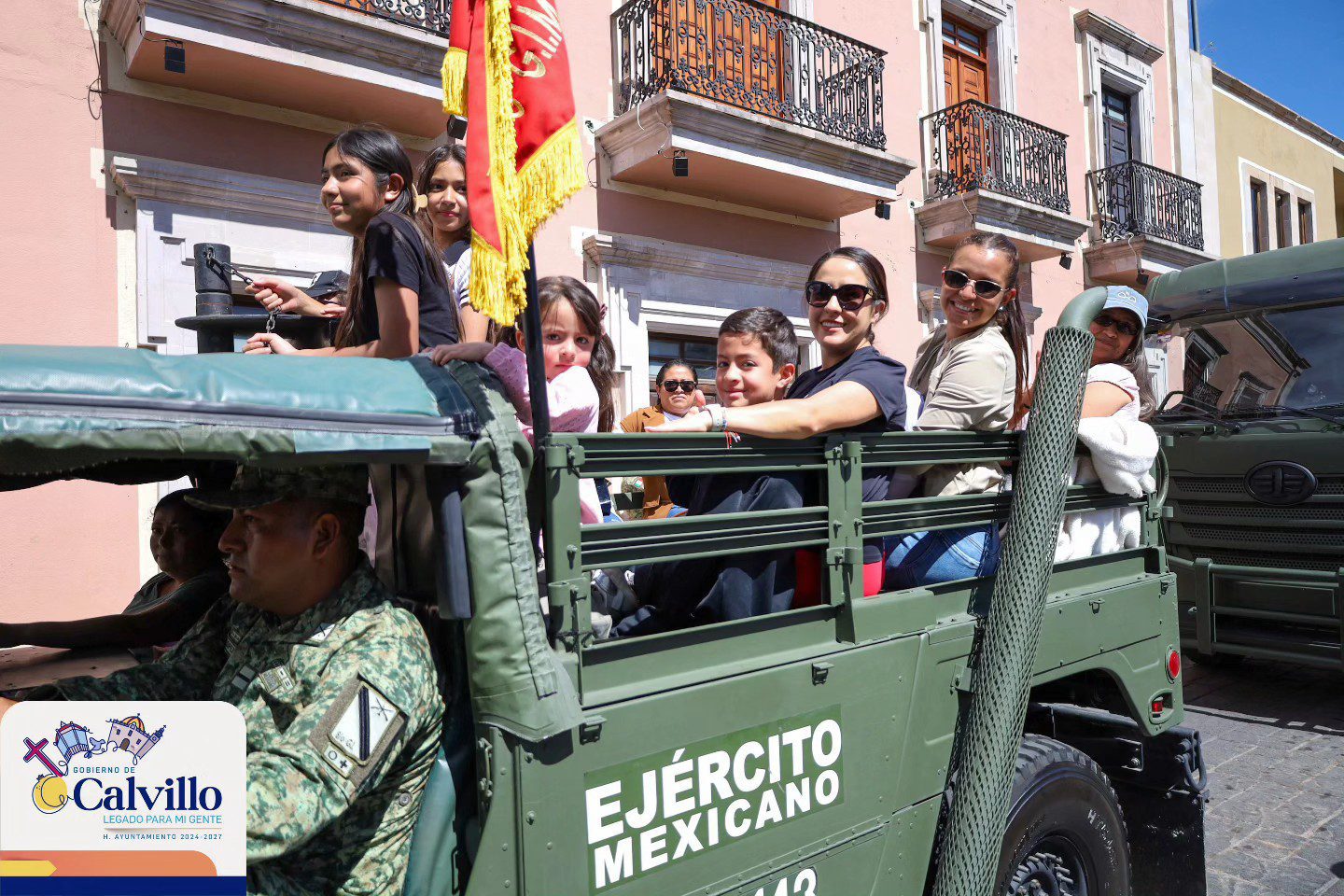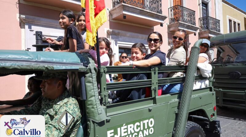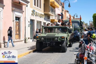 Calvillo, Aguascalientes. – Como parte de las actividades conmemorativas del Mes del Ejército, el Octavo Grupo de Infantería realizó una caravana cívica que recorrió las principales calles del municipio de Calvillo, en la que participaron vehículos históricos y unidades oficiales.