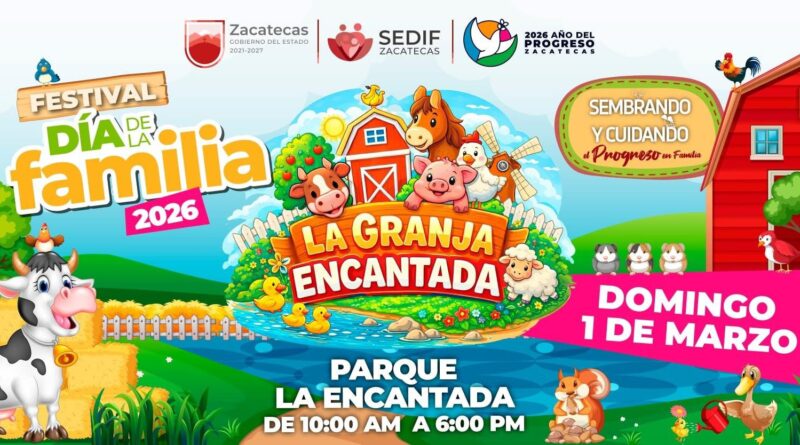 Zacatecas, Zac., 18 de febrero de 2026.- En un horario de 10:00 a 18:00 horas, en el Parque La Encantada, el Gobierno de Zacatecas encabezado por el mandatario David Monreal Ávila celebrará el próximo 1 de marzo de este año el Día de la Familia con una gran fiesta temática de granja.
