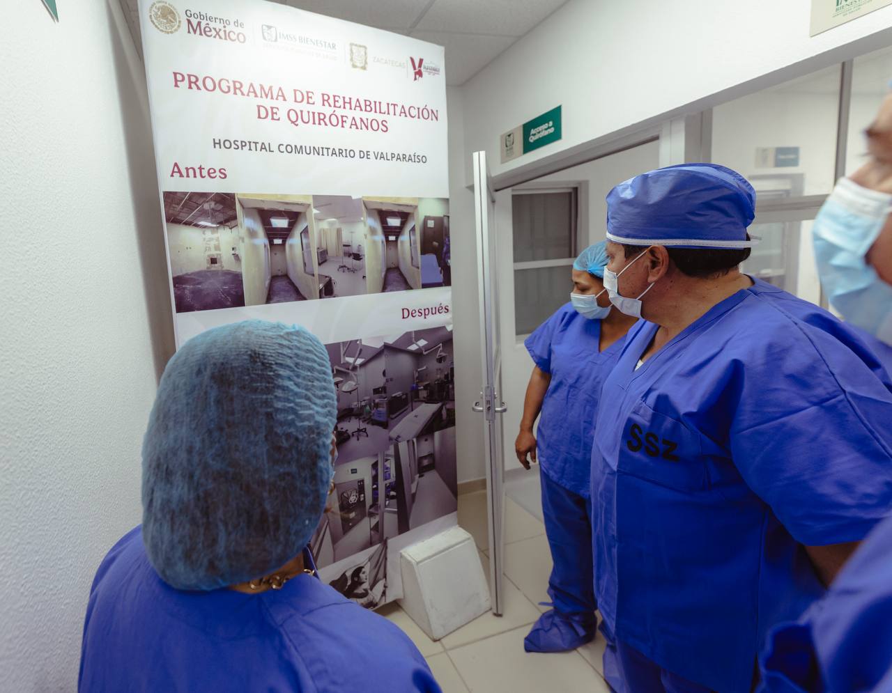 En presencia de Carlos Marcos Hernández Magallanes, coordinador estatal de Servicios Públicos de Salud del IMSS Bienestar; María Guadalupe Ortiz Robles, presidenta municipal de Valparaíso; José Pedro Muñoz Ávalos, director del Hospital Comunitario de Valparaíso, y Vladimir Lorena Hernández, coordinador regional, el Gobernador David Monreal cortó el listón inaugural de las áreas de quirófanos.