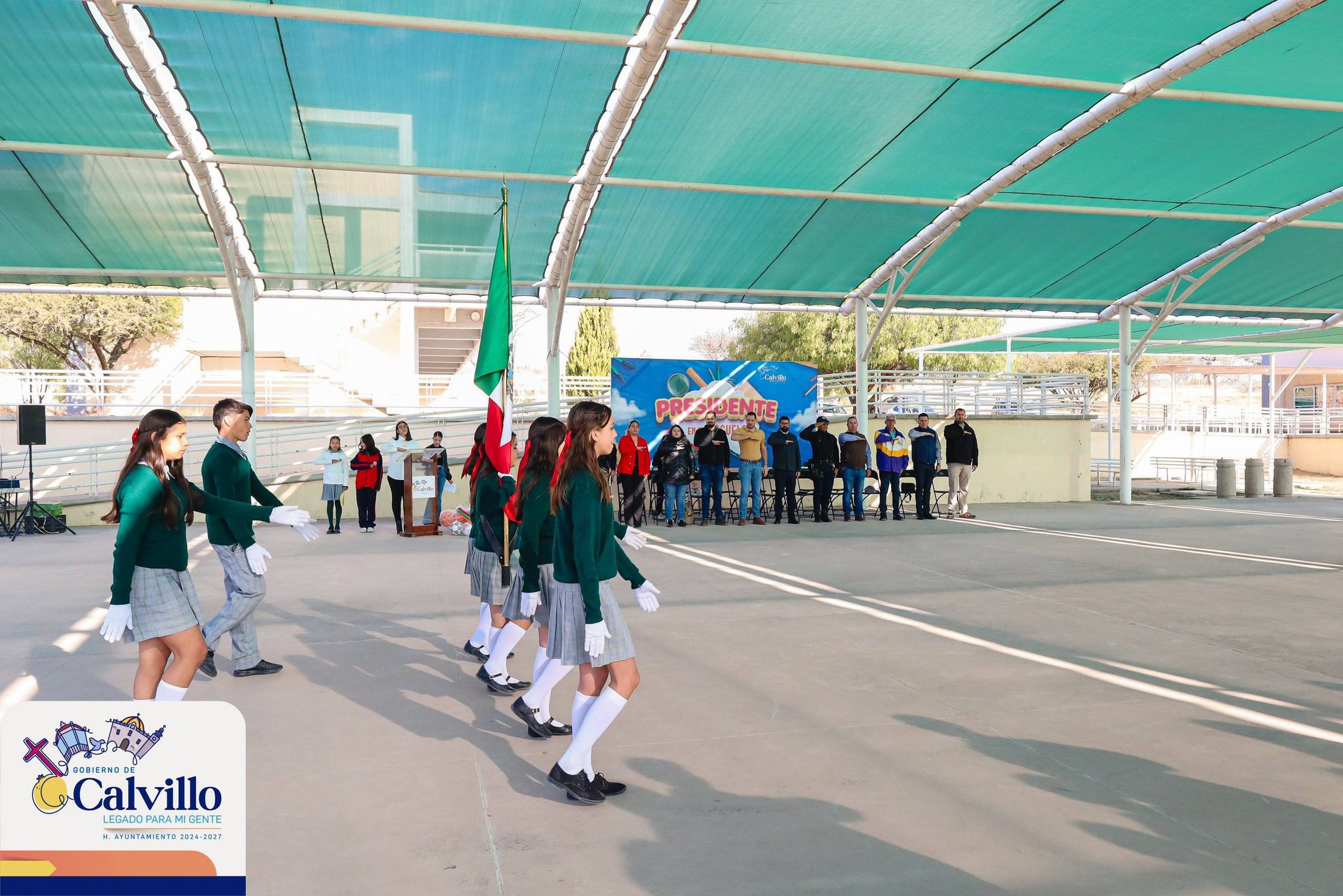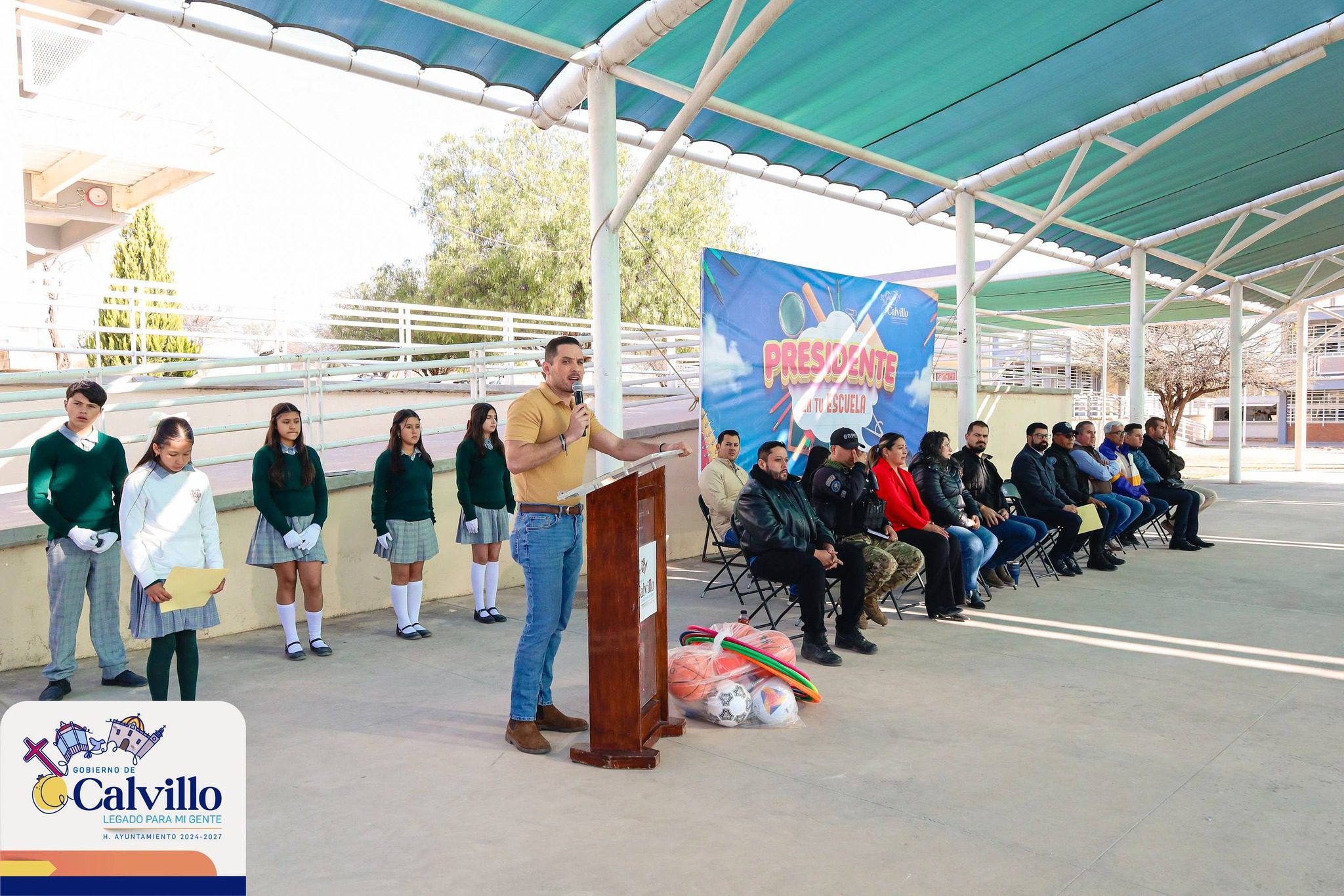 Calvillo, Aguascalientes. – El alcalde de Calvillo, Daniel Romo Urrutia, encabezó una nueva jornada del programa Presidente en tu Escuela, al visitar la Secundaria General No. 35 Valle de Huejúcar, ubicada en la comunidad de Arboledas.