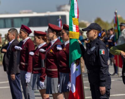 Vía remota, la Presidenta de México, Claudia Sheinbaum Pardo, tomó la protesta de bandera a 80 planteles de la Ciudad de México, así como a 56 escoltas de las Fuerzas Armadas mexicanas y, simultáneamente, a 920 escoltas de escuelas secundarias y de nivel medio superior de las 31 entidades federativas.