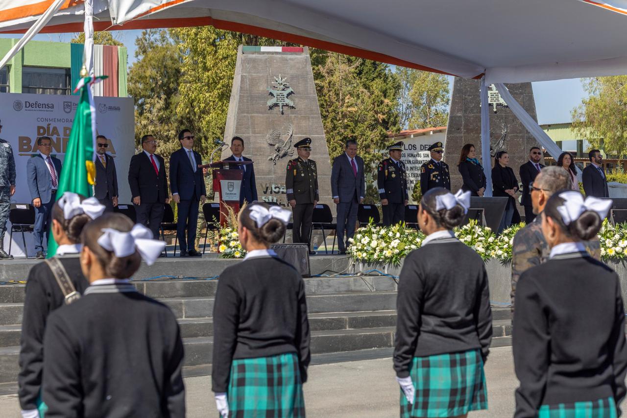 Acompañado por el Comandante de la Decimoprimera Zona Militar, Isaac Bravo López, el mandatario estatal expresó que “no es una fecha cualquiera”, se rinden honores a uno de los símbolos más profundos de la identidad nacional, “nuestra Bandera de México”.